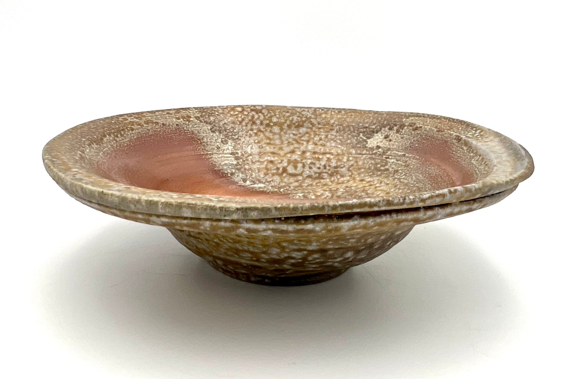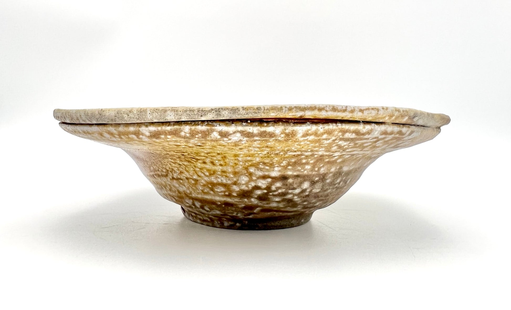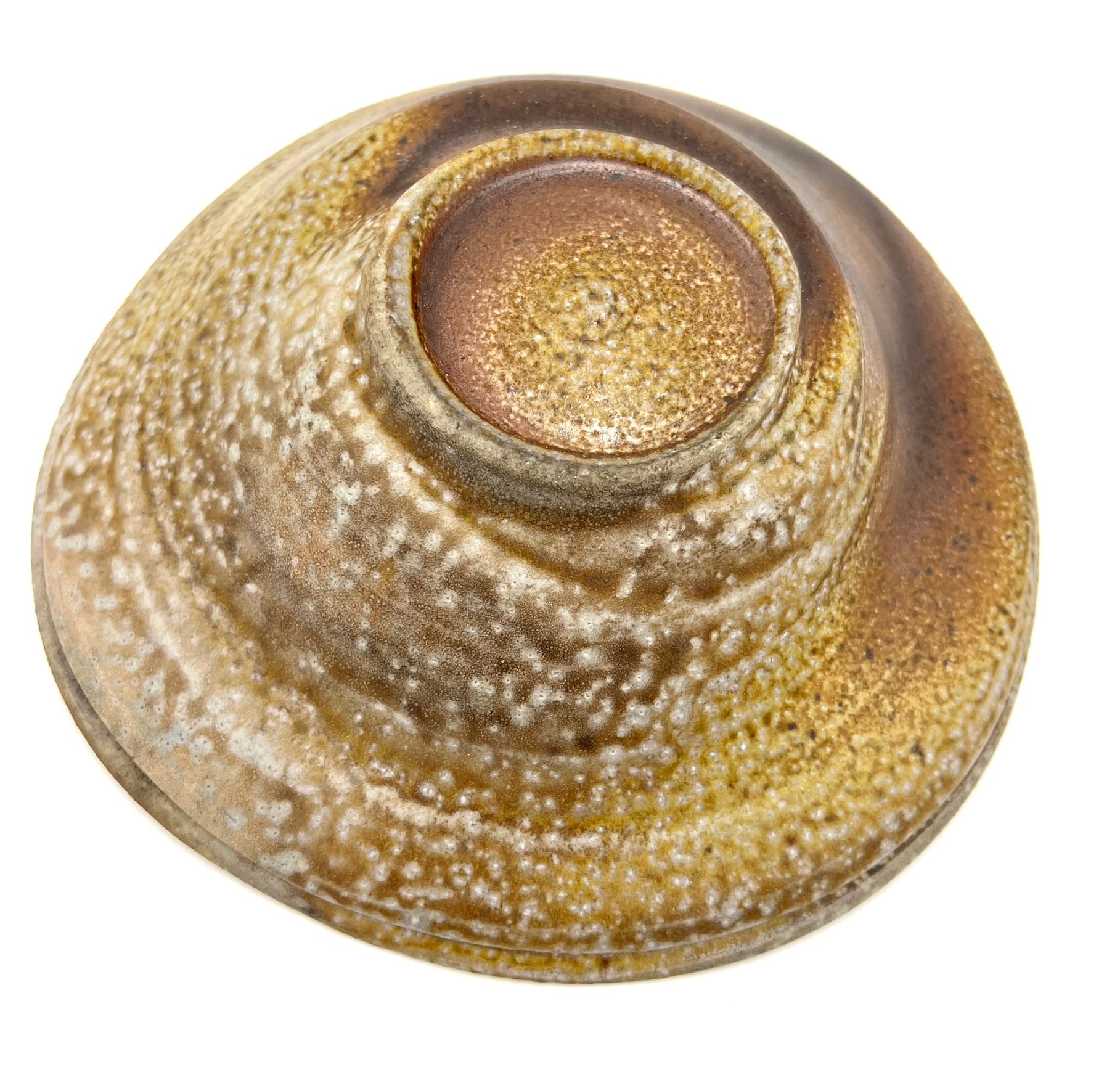 This bowl was thrown and trimmed on the wheel of porcelaneous stoneware clay. Beautiful crystal growth and dark to light flashing splay across this bowl. There is a very free form to this single server. It also features a double lip for added intrigue. The bowl measures 8 inches wide.