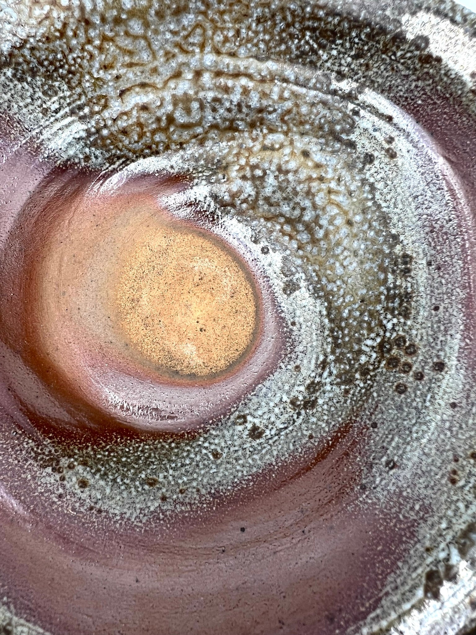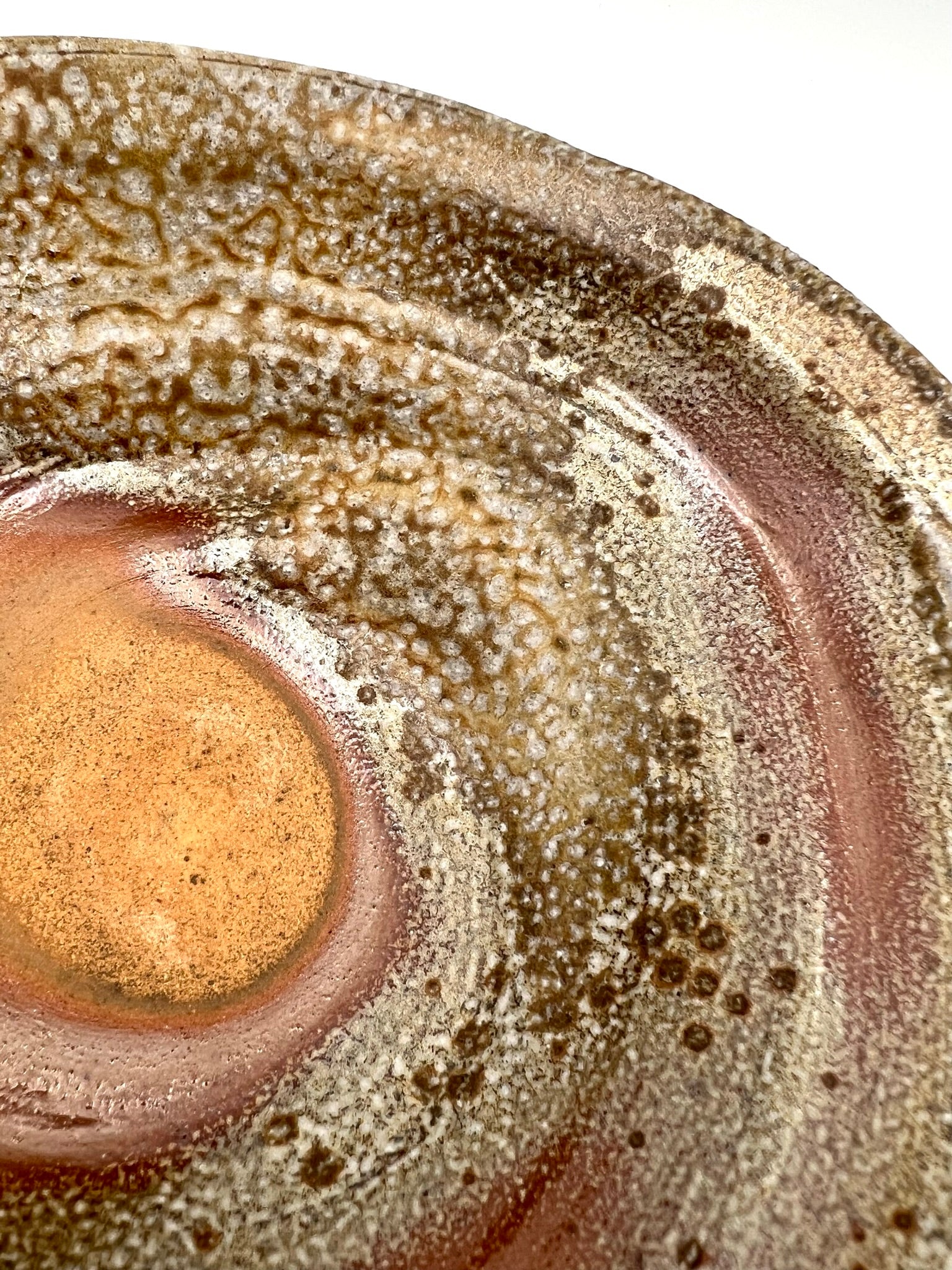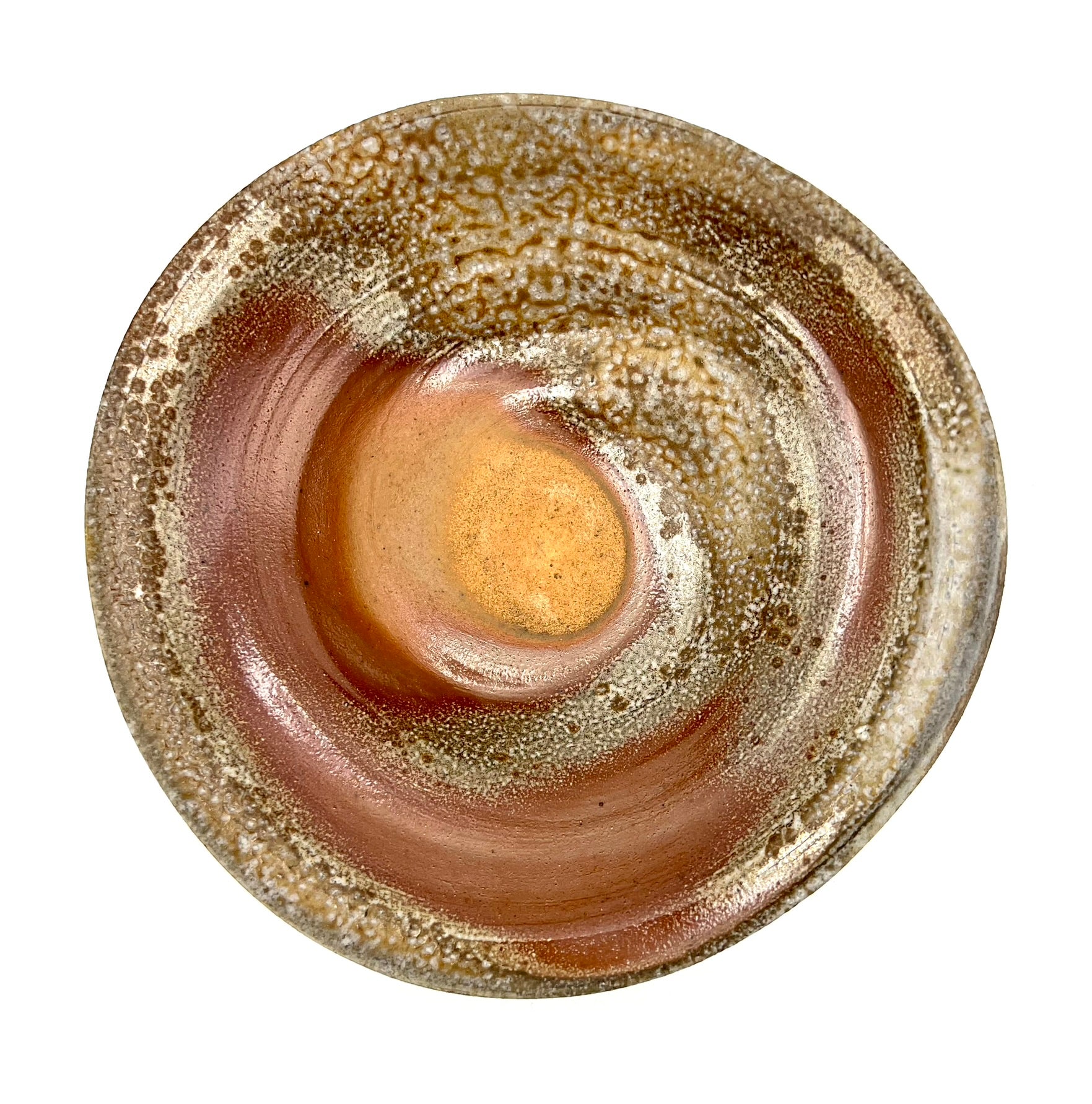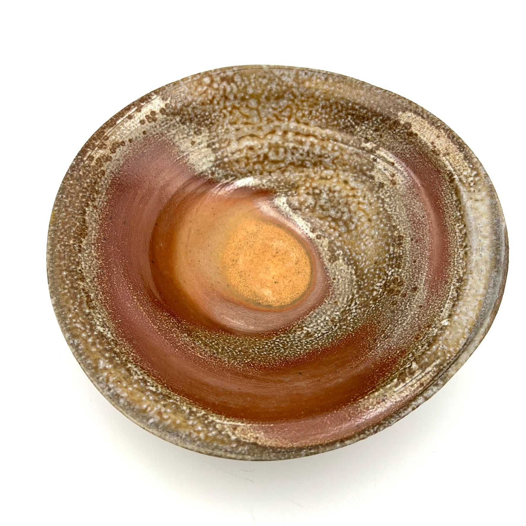 This bowl was thrown and trimmed on the wheel of porcelaneous stoneware clay. Beautiful crystal growth and dark to light flashing splay across this bowl. There is a very free form to this single server. It also features a double lip for added intrigue. The bowl measures 8 inches wide.