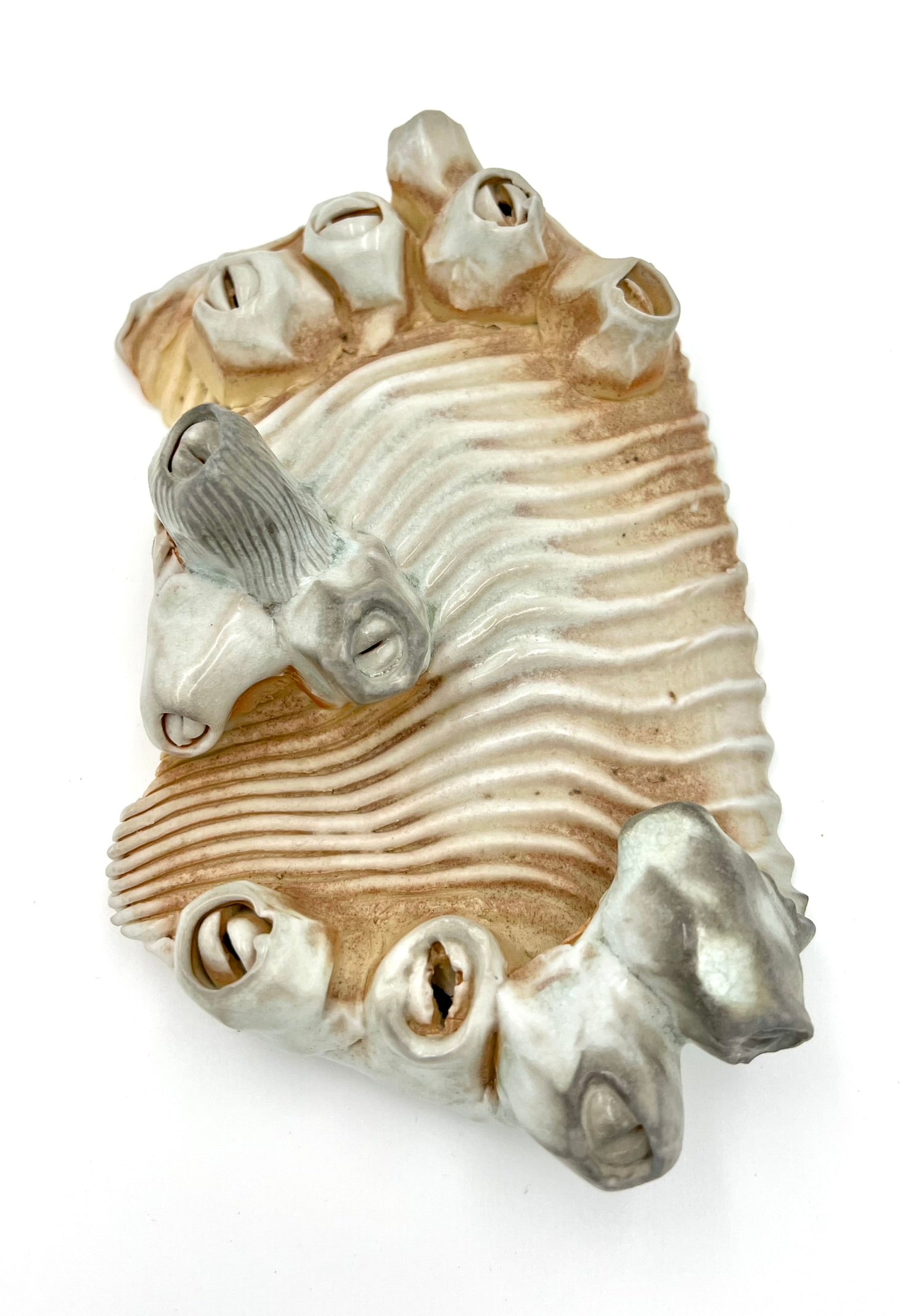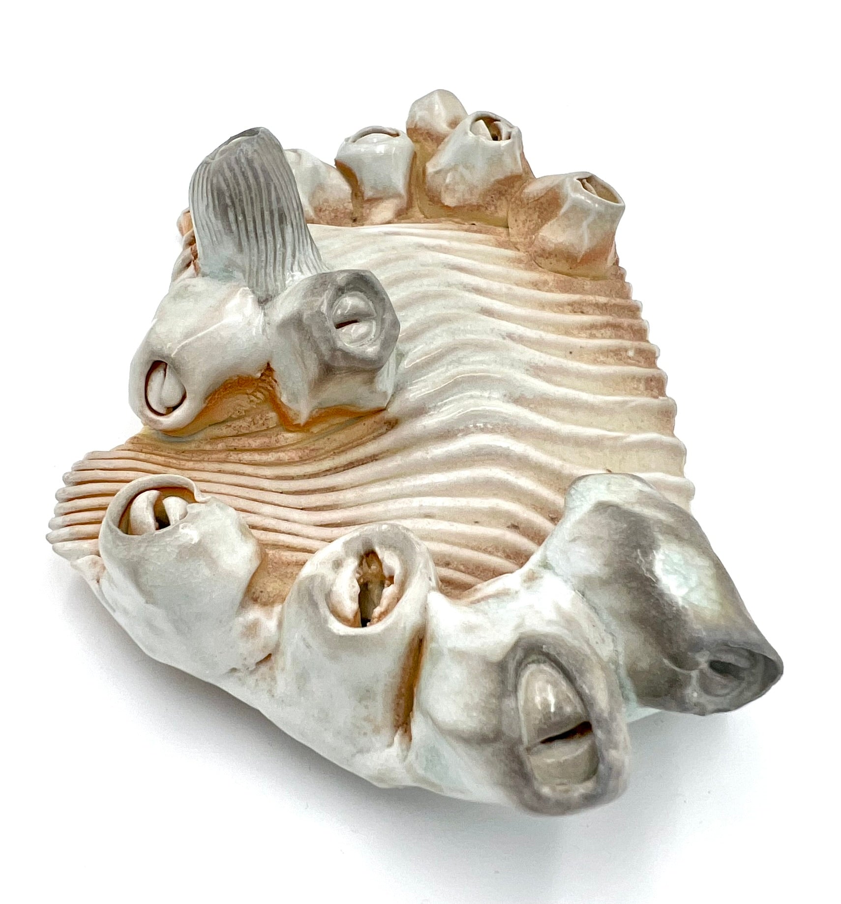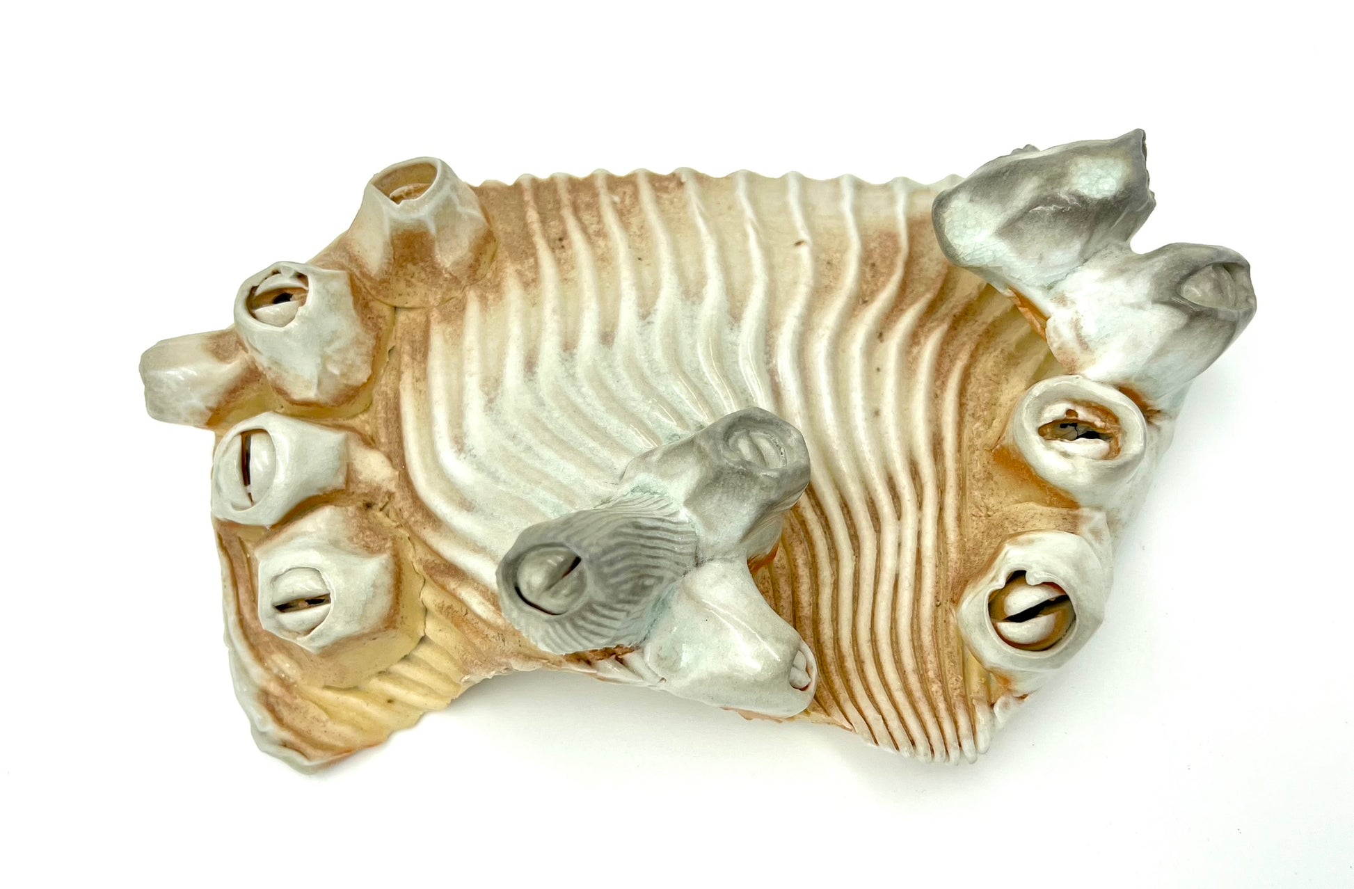 This sculpture is made of NZ10 clay and fired in an anagama kiln for days.