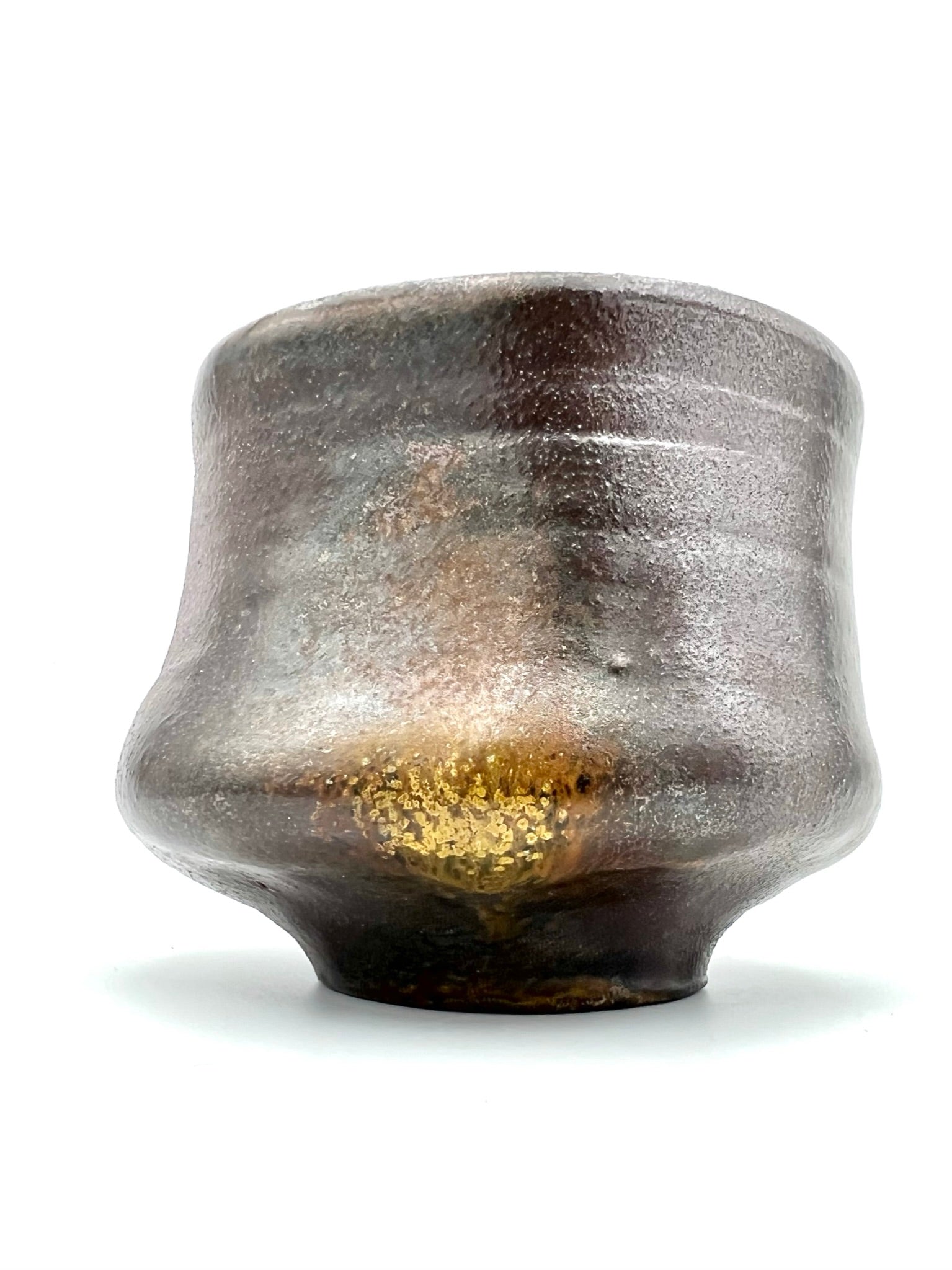 This cup was thrown and altered on the potters wheel. It is made of Oregon Brown and SMY clay. Enjoy the soft subtleties of this piece. It was fired for 120 hours in an anagama. A window of wood ash has opened up the opportunity for golden crystal growth. The cup measures 4 inches wide by 3.75 inches tall.