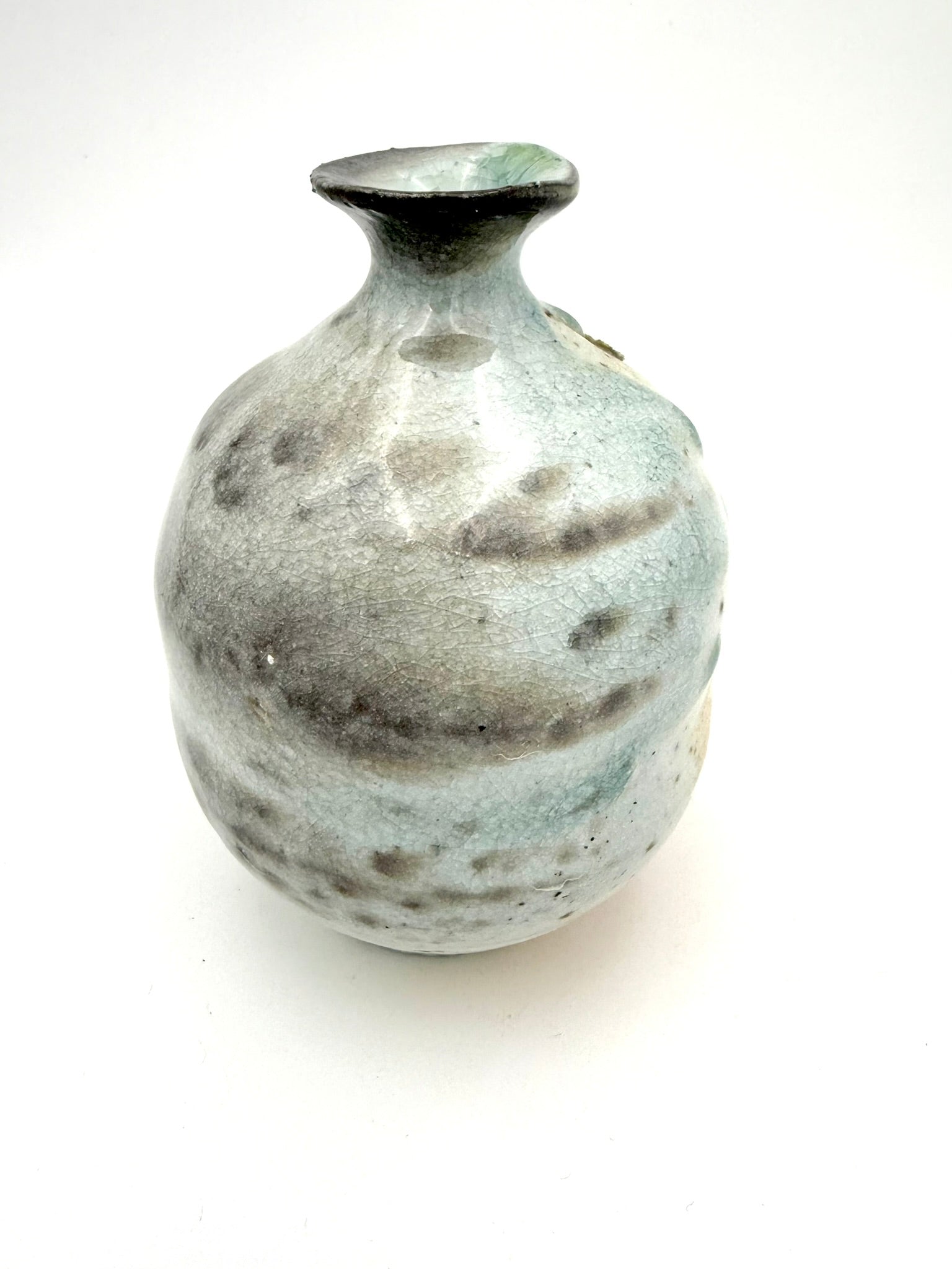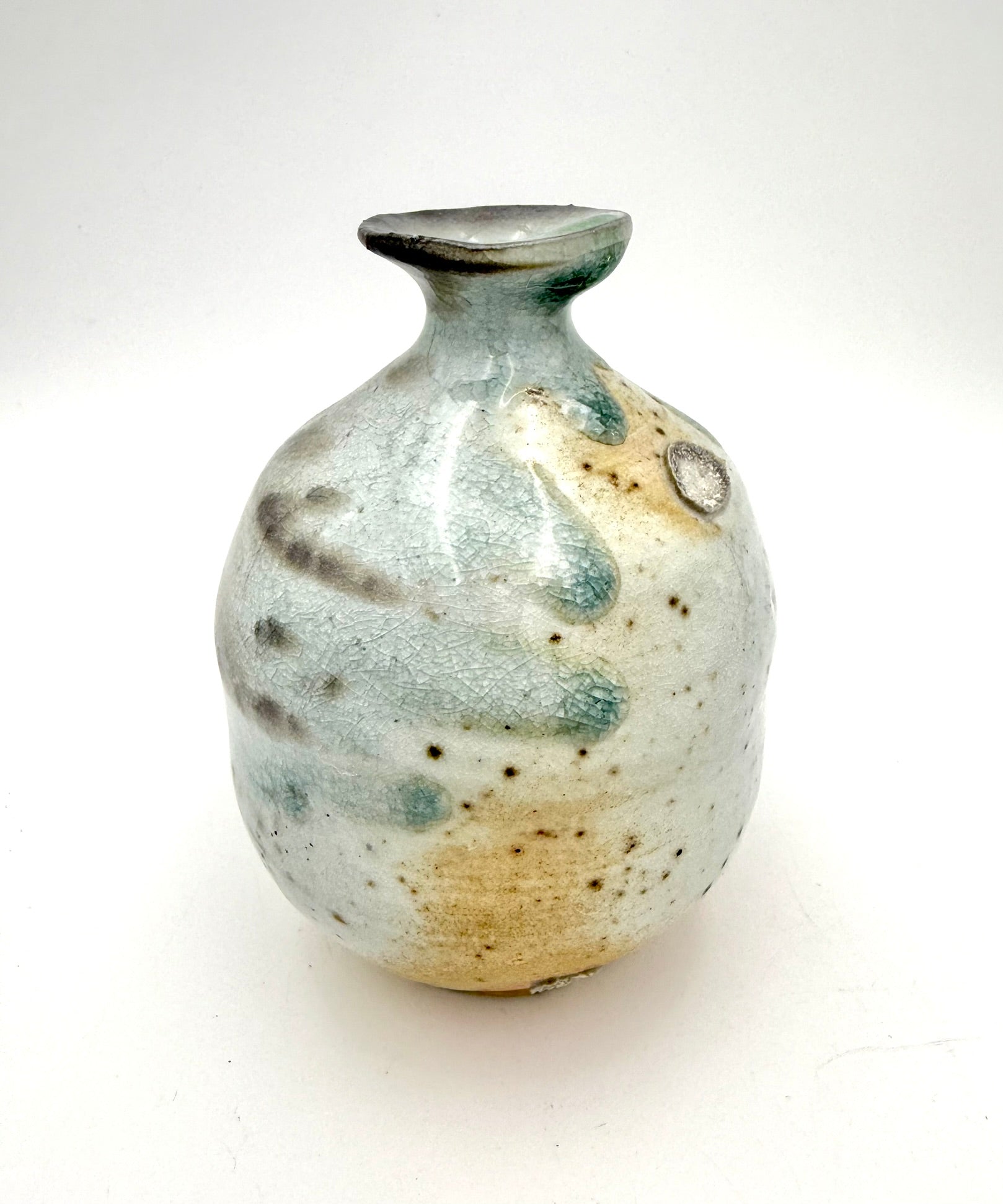 Etruscan style bud vase wood/soda side fired on seashells