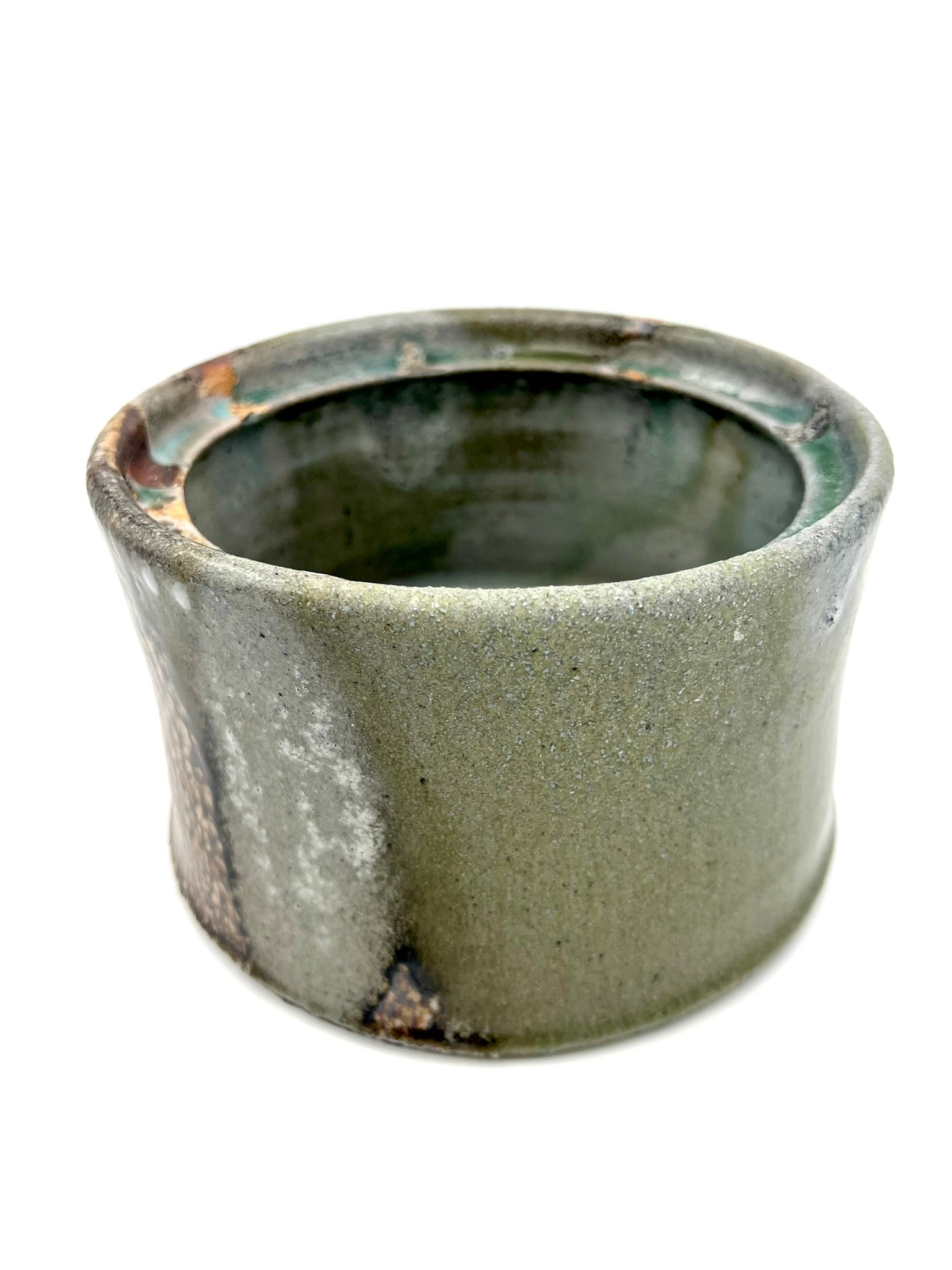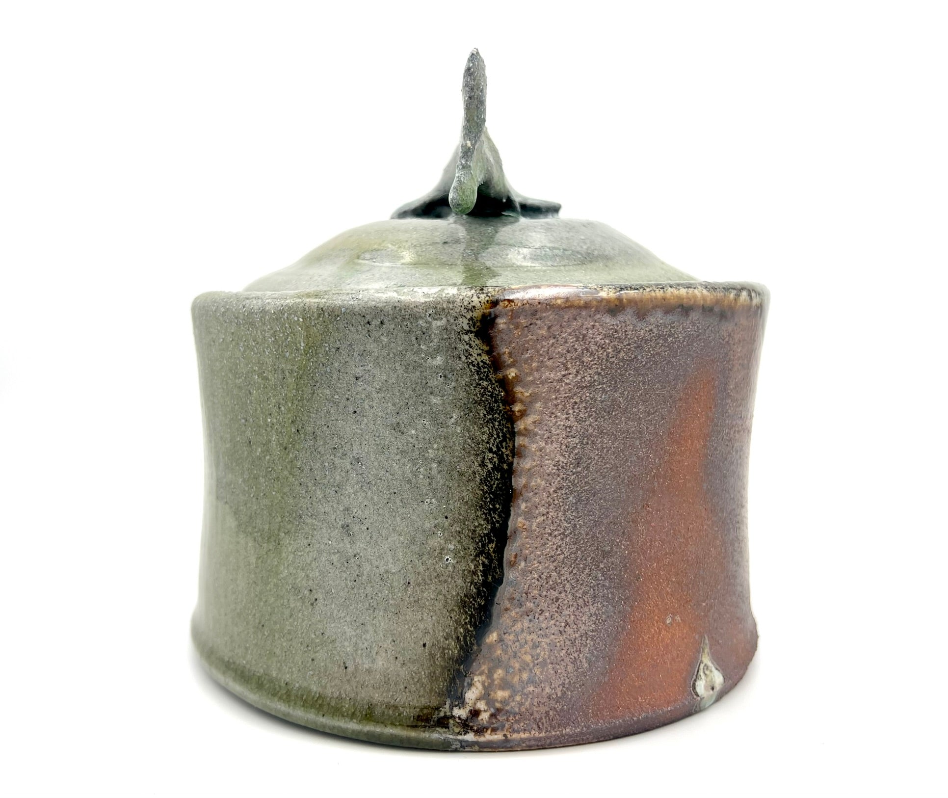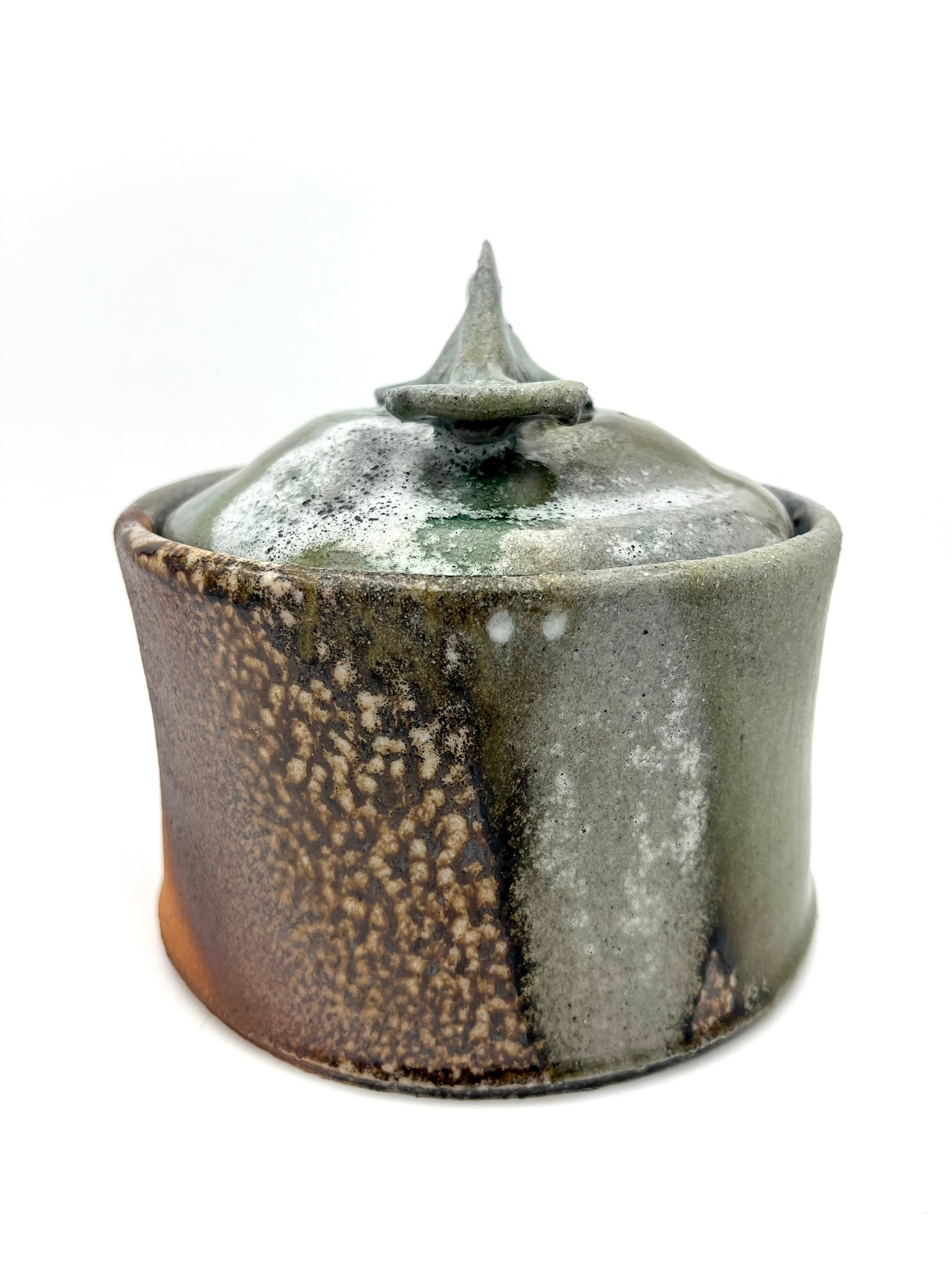 Thrown on the potters wheel and sculpted handle. woodfired and drenched in soda.