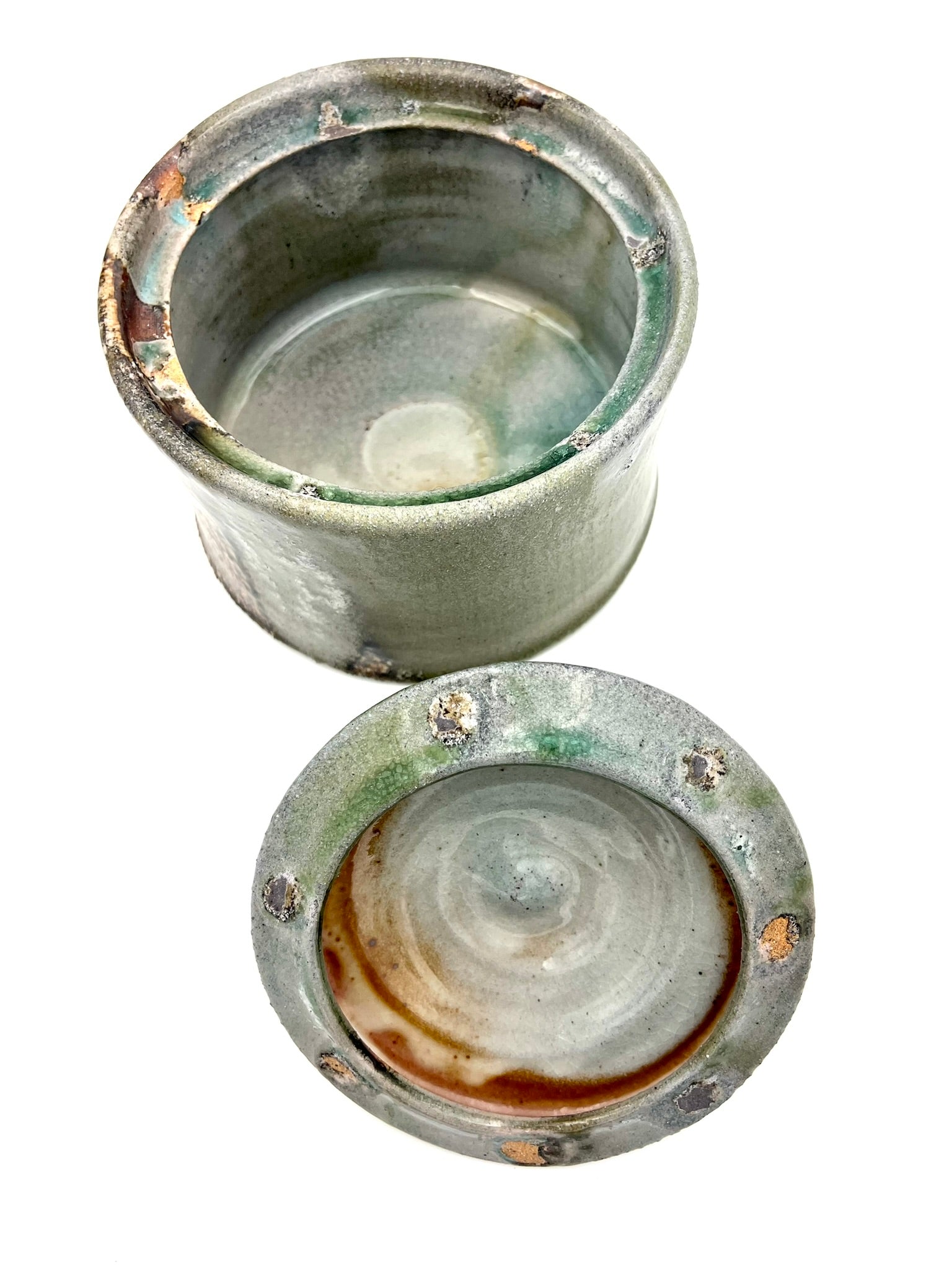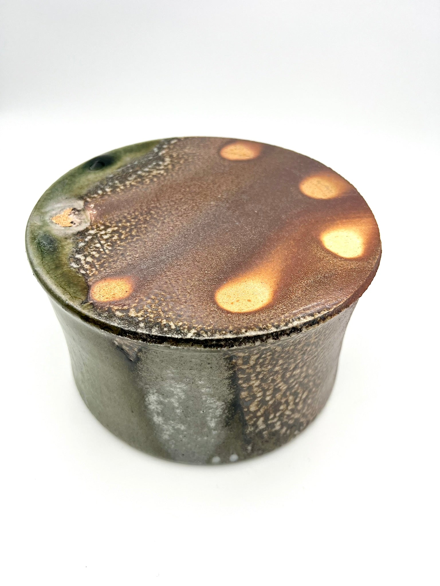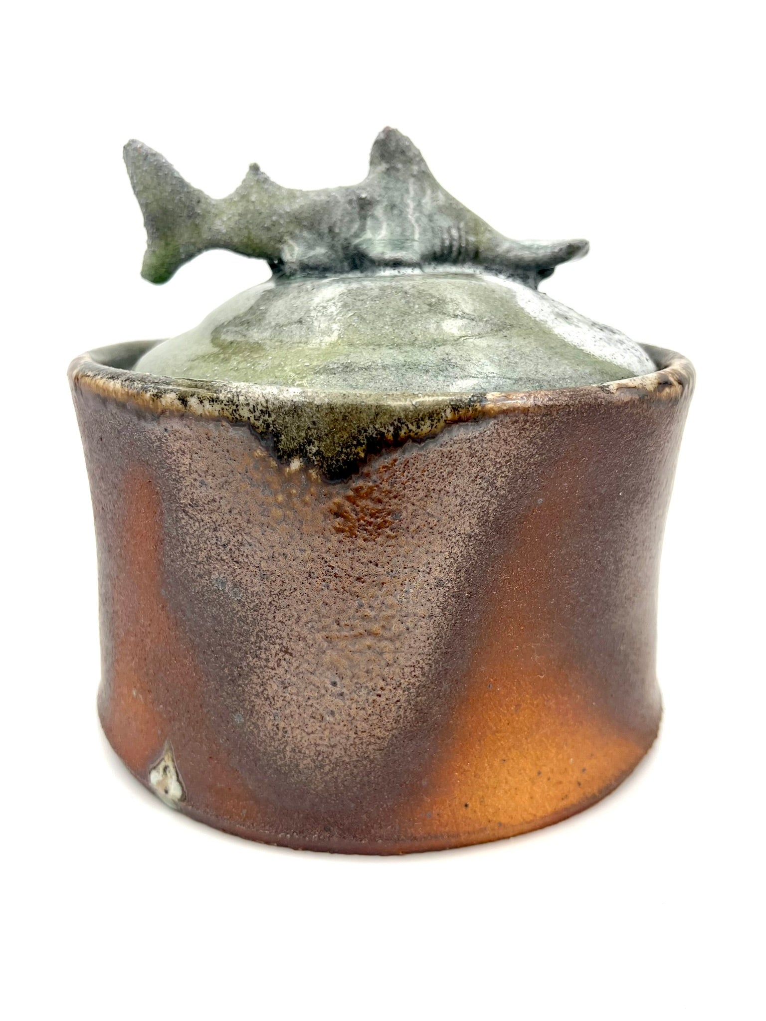 Thrown on the potters wheel and sculpted handle. woodfired and drenched in soda.