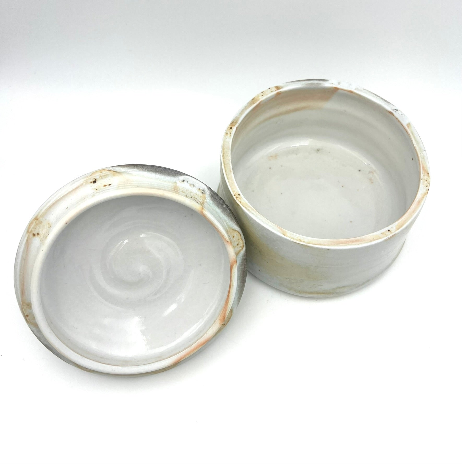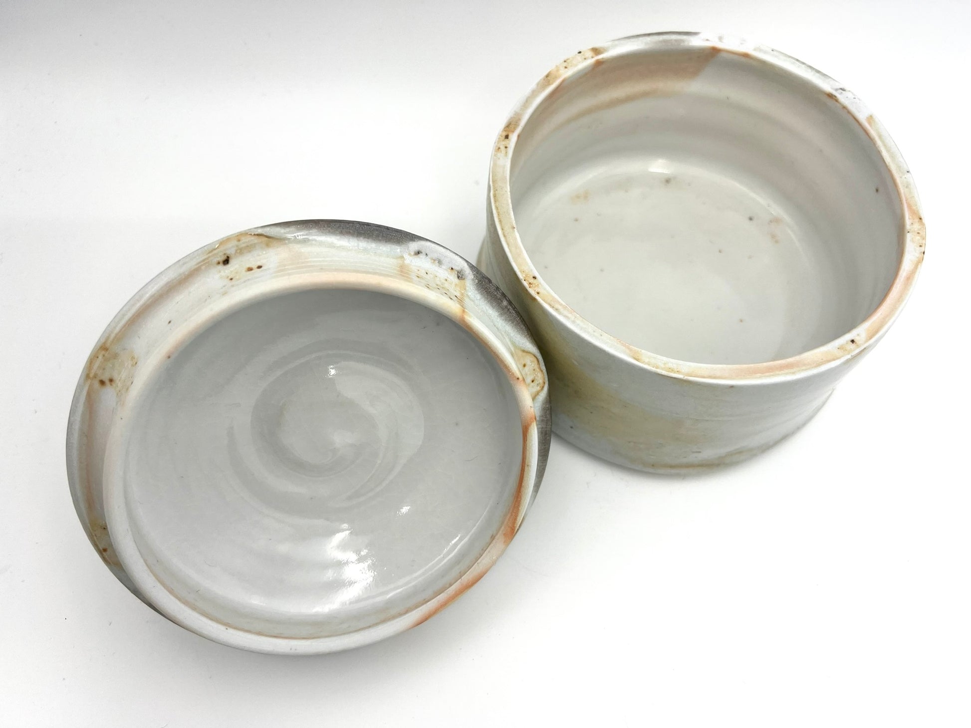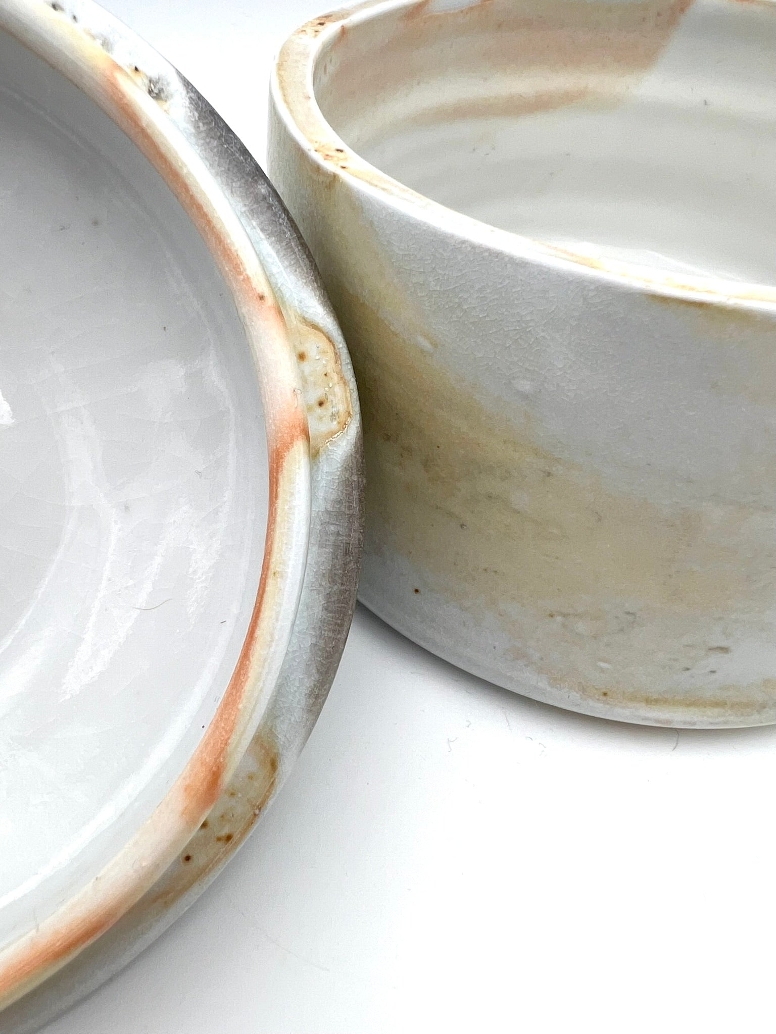 Thrown on the potters wheel and sculpted handle. wood/soda fired.