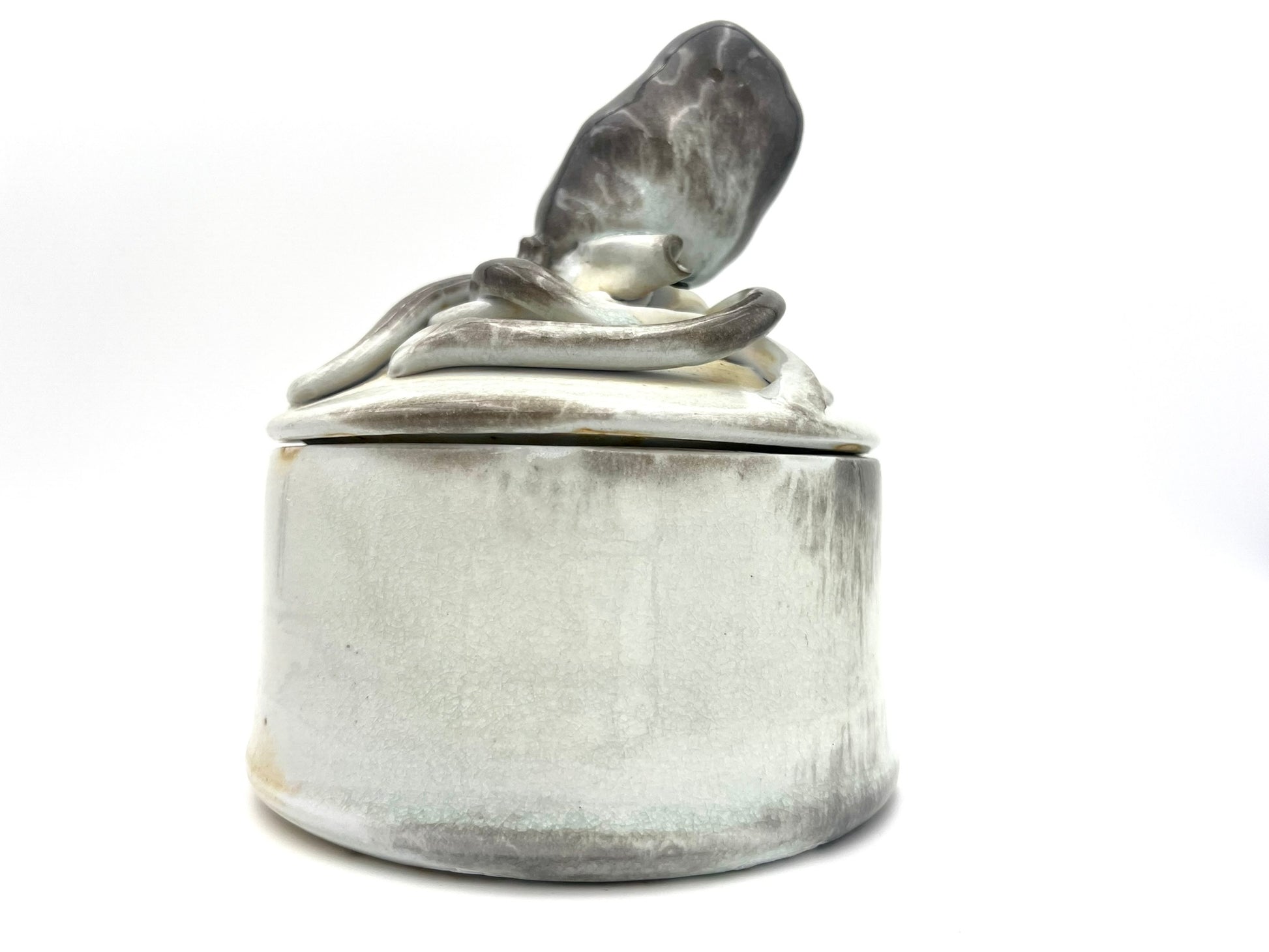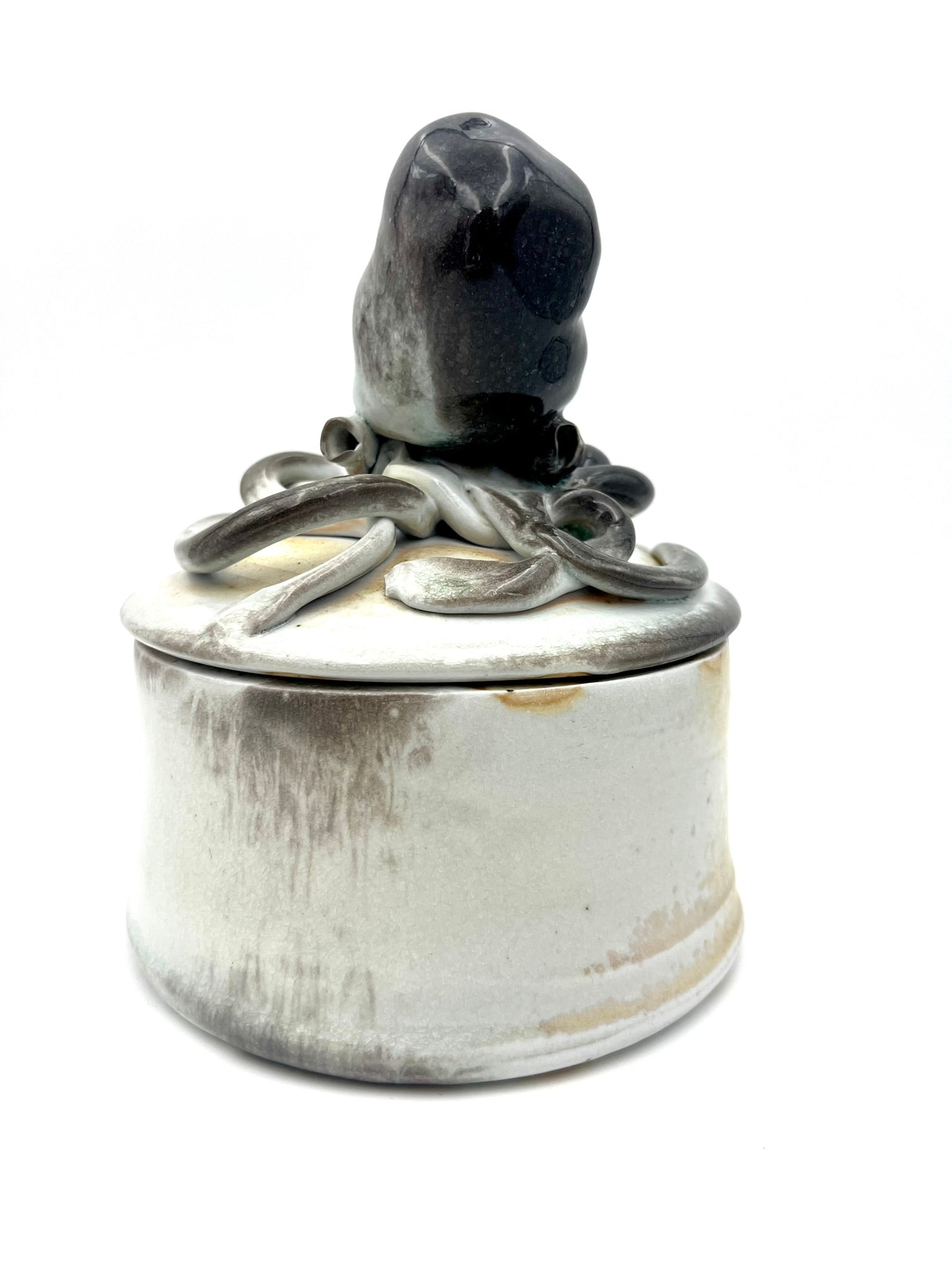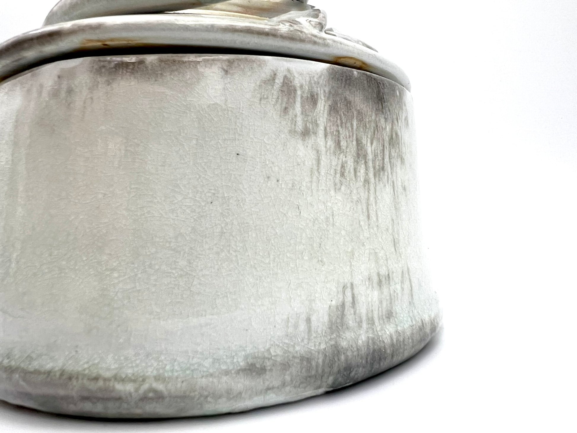 Thrown on the potters wheel and sculpted handle. wood/soda fired.