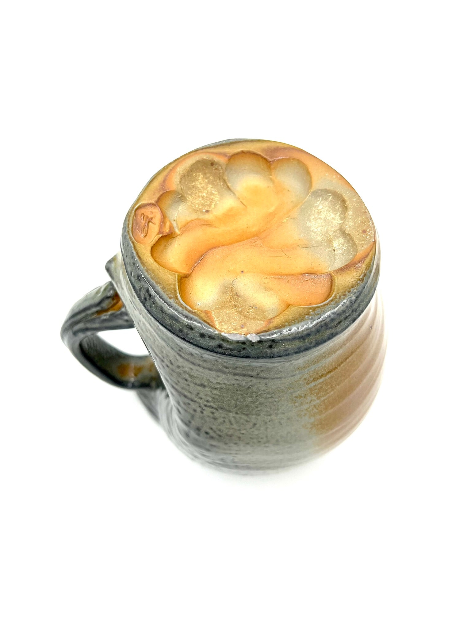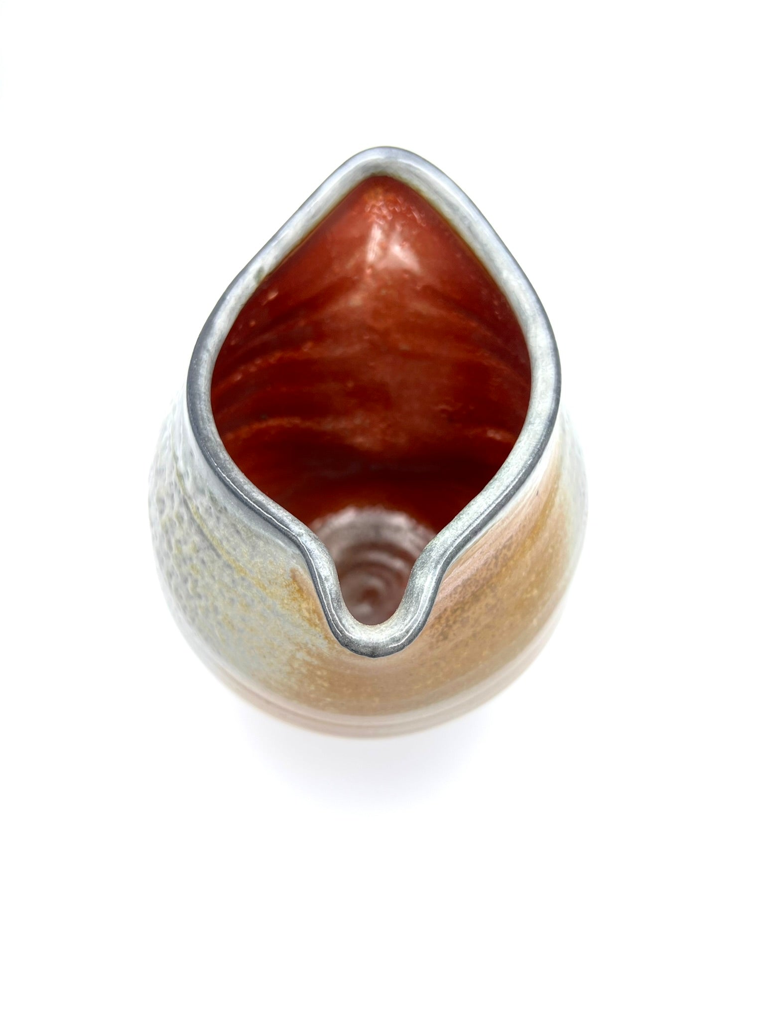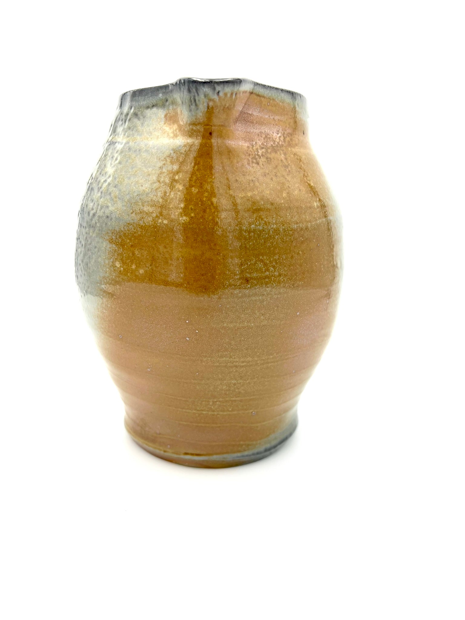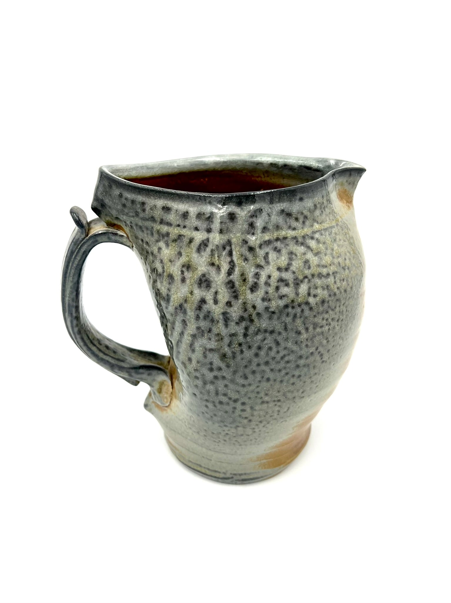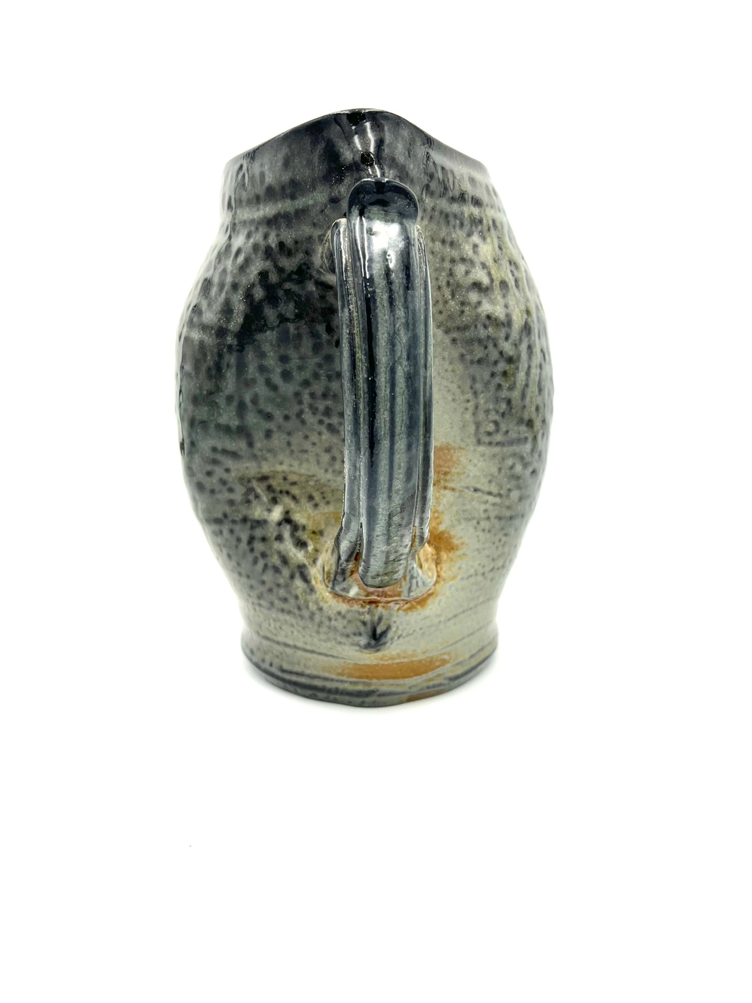 I threw, darted, and handled this pitcher on the wheel of Coleman Porcelain. It was fired for 30+ hours in a wood/soda kiln. I intended for the handle to appear as if it were a bone or a twig holding open the mouth of an alligator snapping turtle. This piece measures around 7 inches tall, and 7 inches wide with the handle.