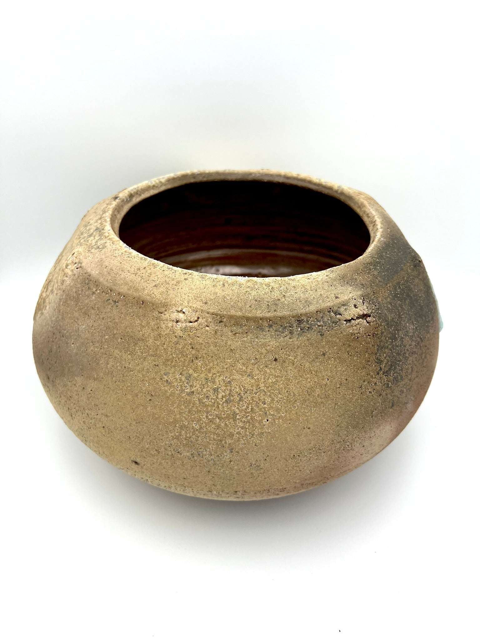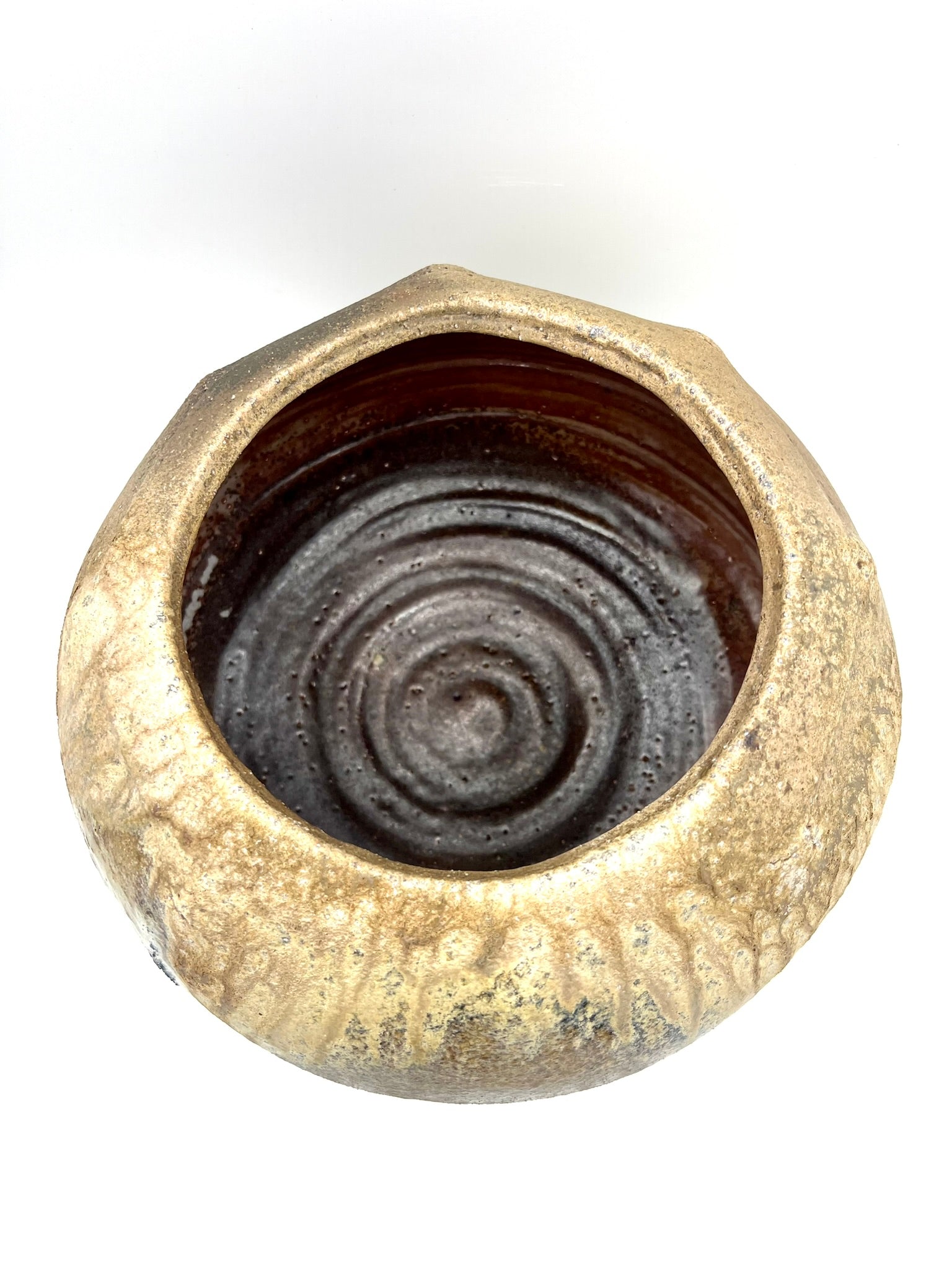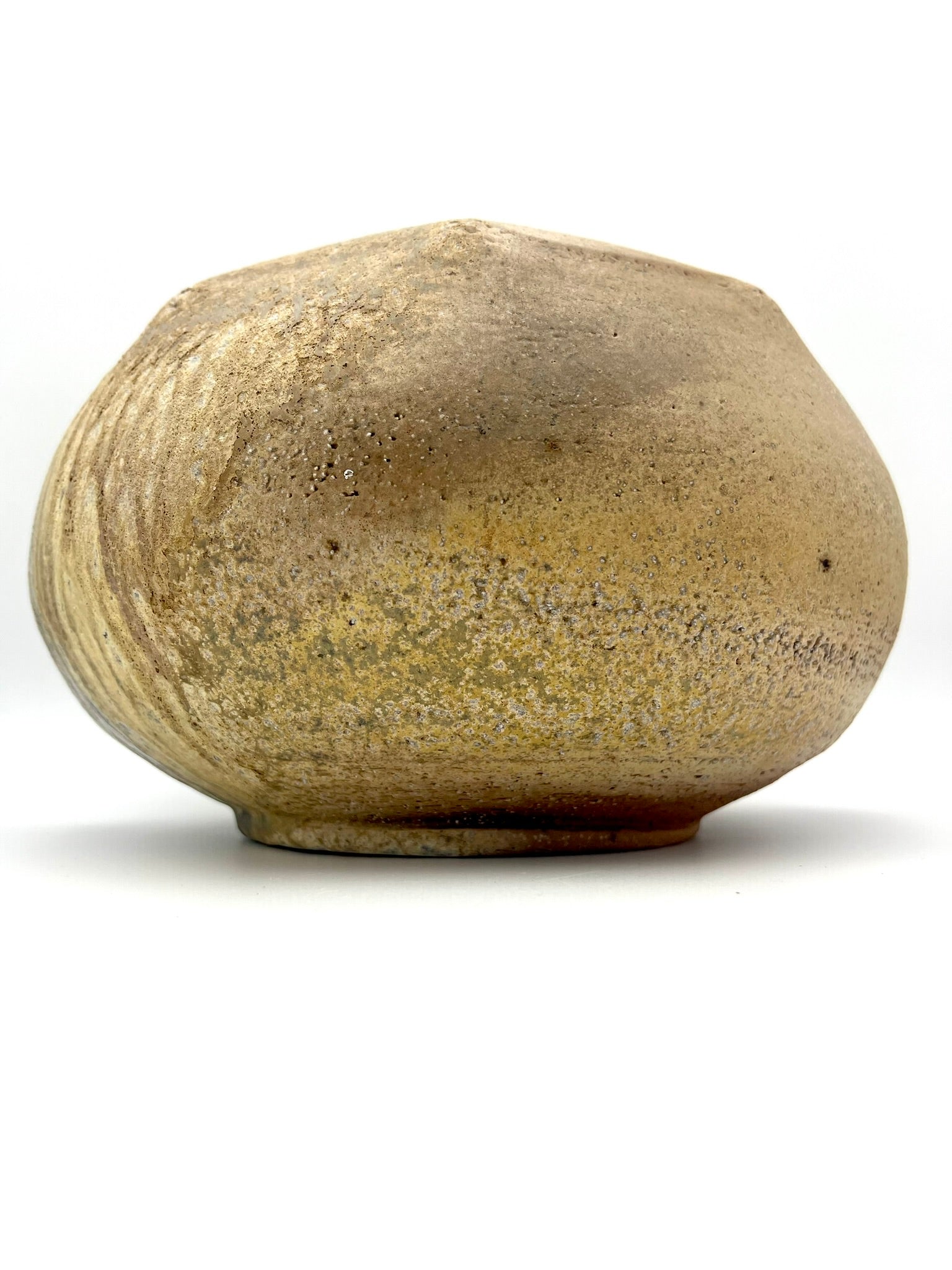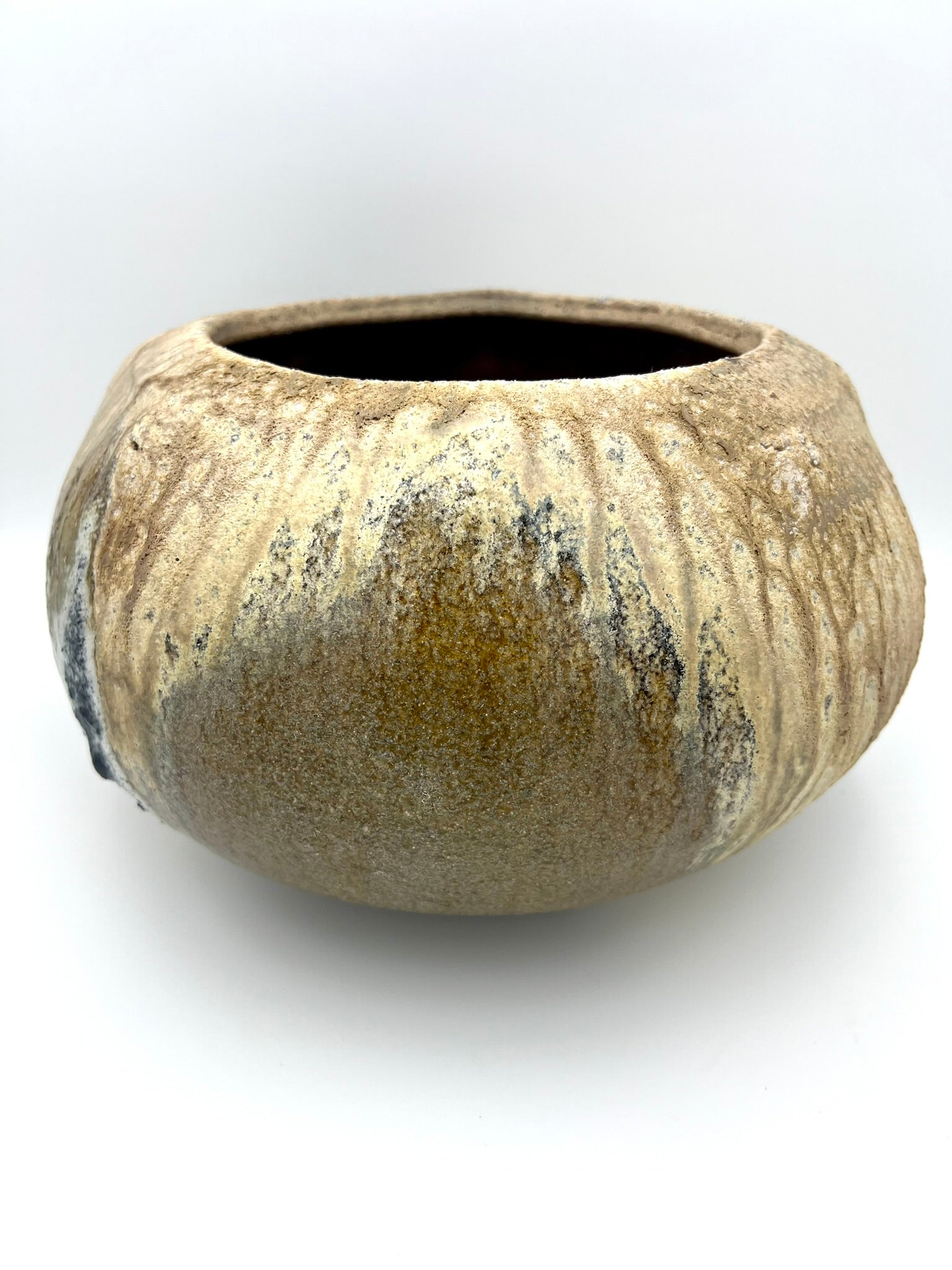 This large moon shape was thrown and altered on the potters wheel. The clay is Bedrock from Clay Art Center Tacoma. I wedged a lot of Ceramic Rutile into the clay body itself. Its amazing how the clay let loose right behind the Bagwall in the old Chicken Cat Wood/Soda kiln at East Creek. The moon measures 7 inches tall & 13 inches wide.