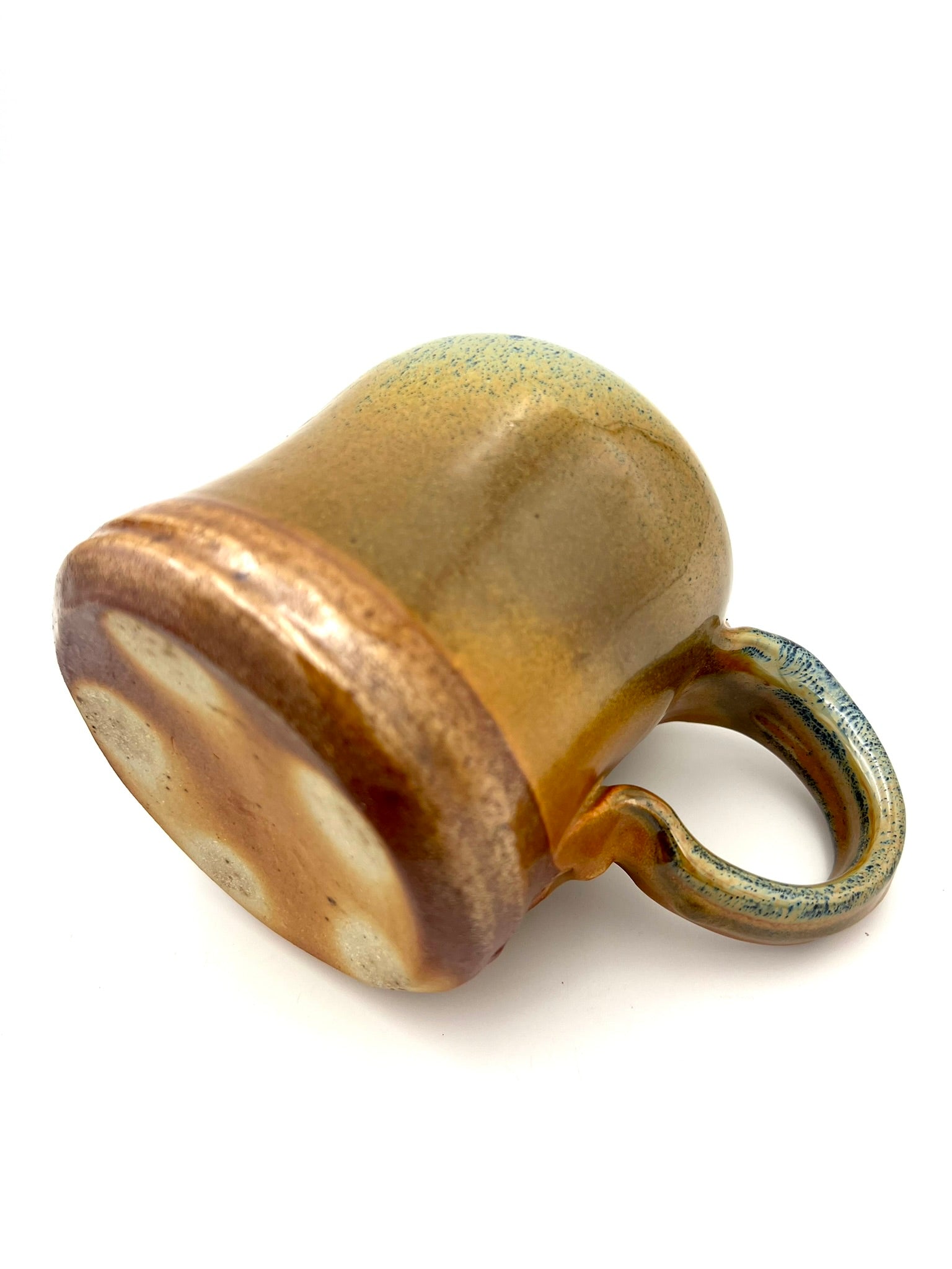 Thrown on the potters wheel/ pulled & sculpted handle. woodfired and drenched in soda. Rutile EPK slip on Welmar clay.