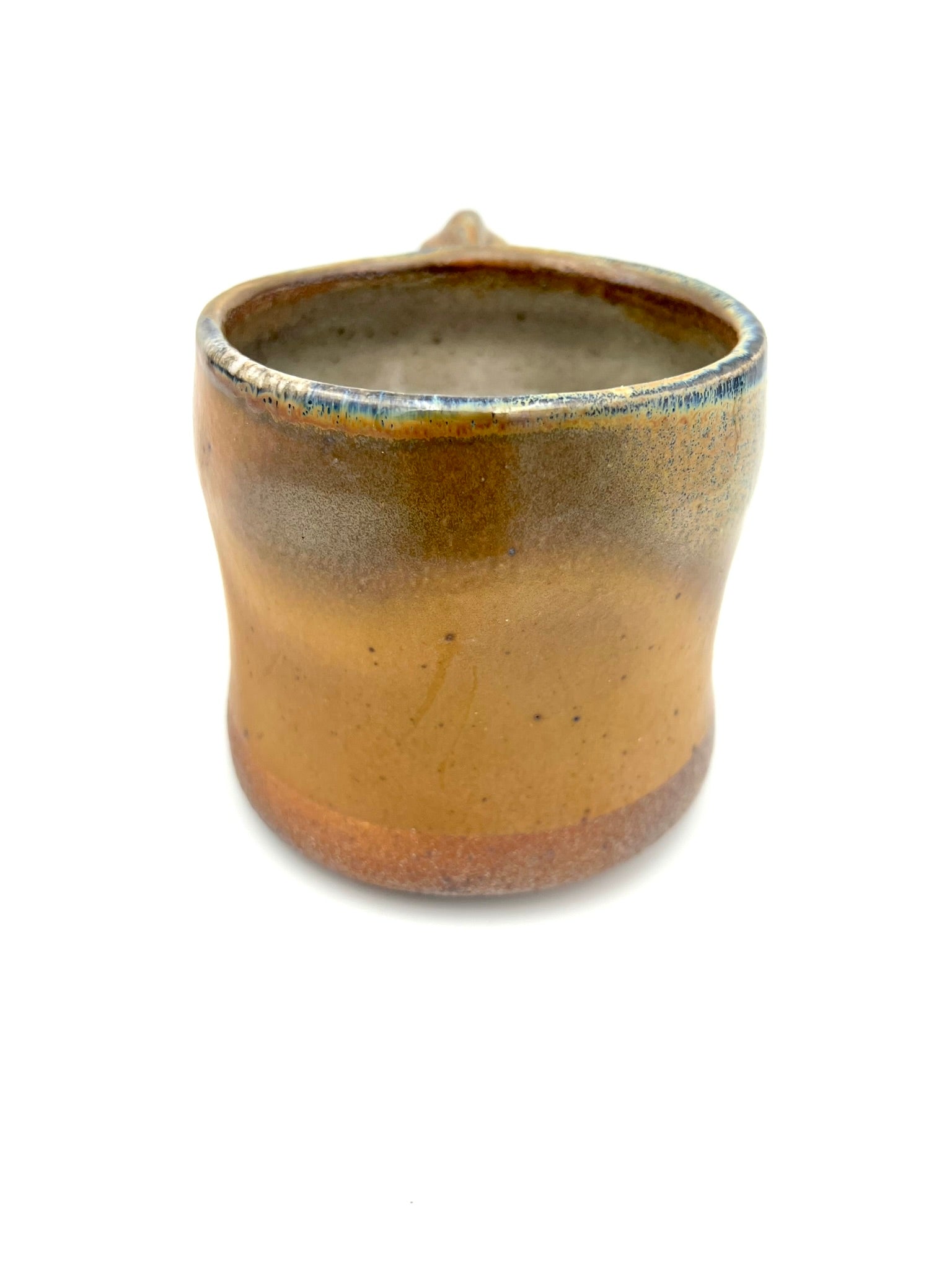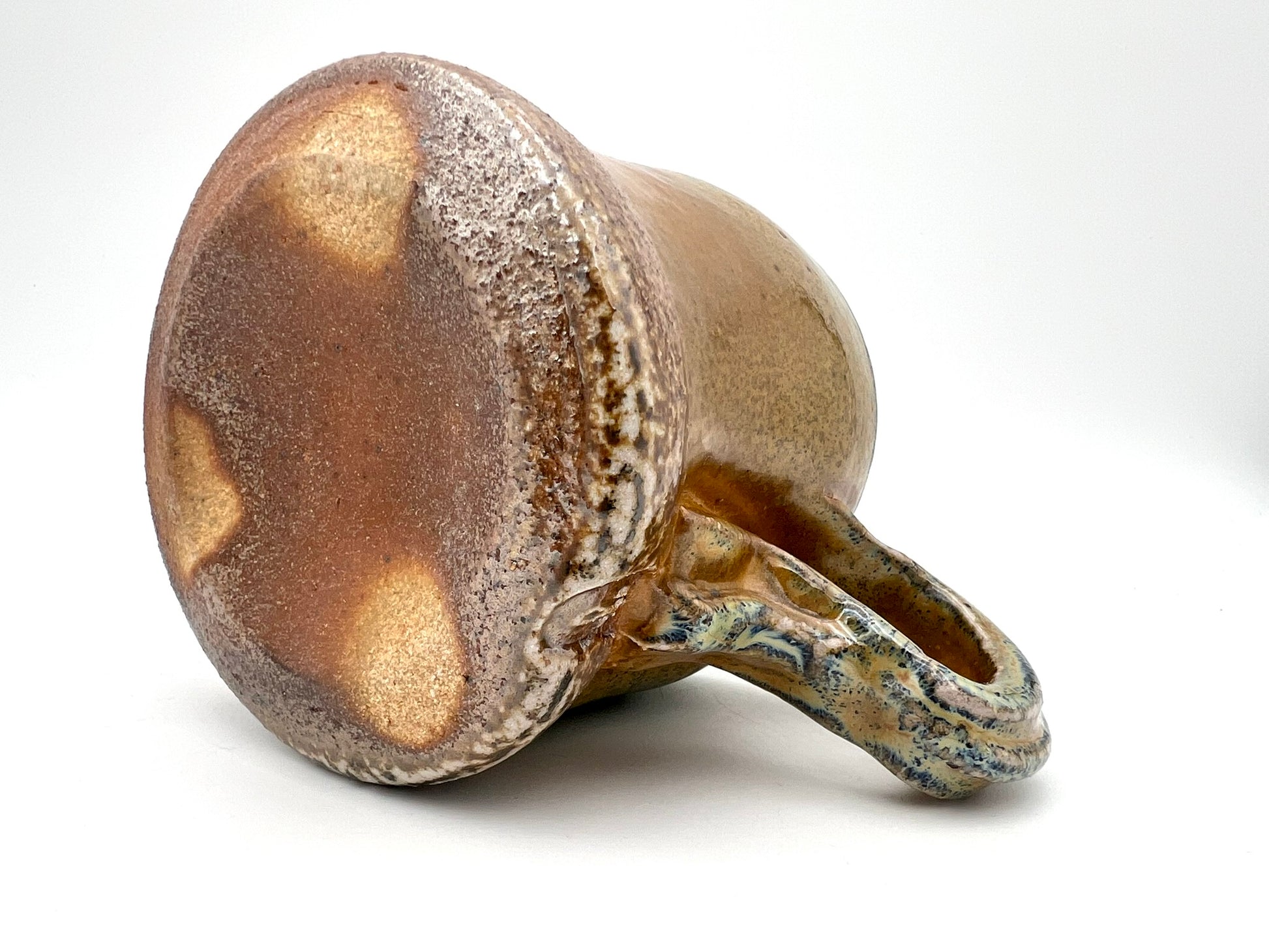Thrown on the potters wheel/ pulled & sculpted handle. woodfired and drenched in soda. Rutile EPK slip on Stoneware Grog clay.
