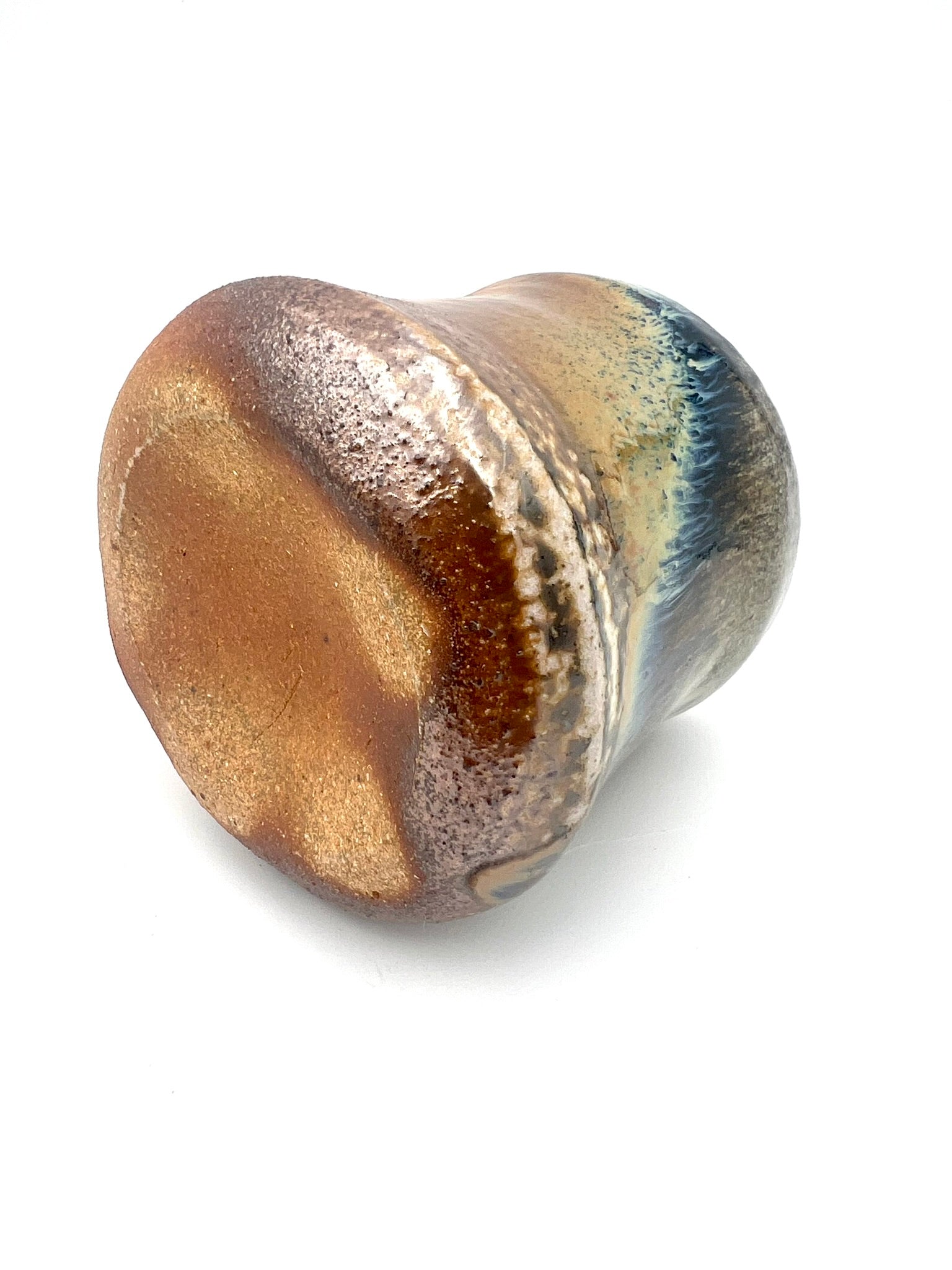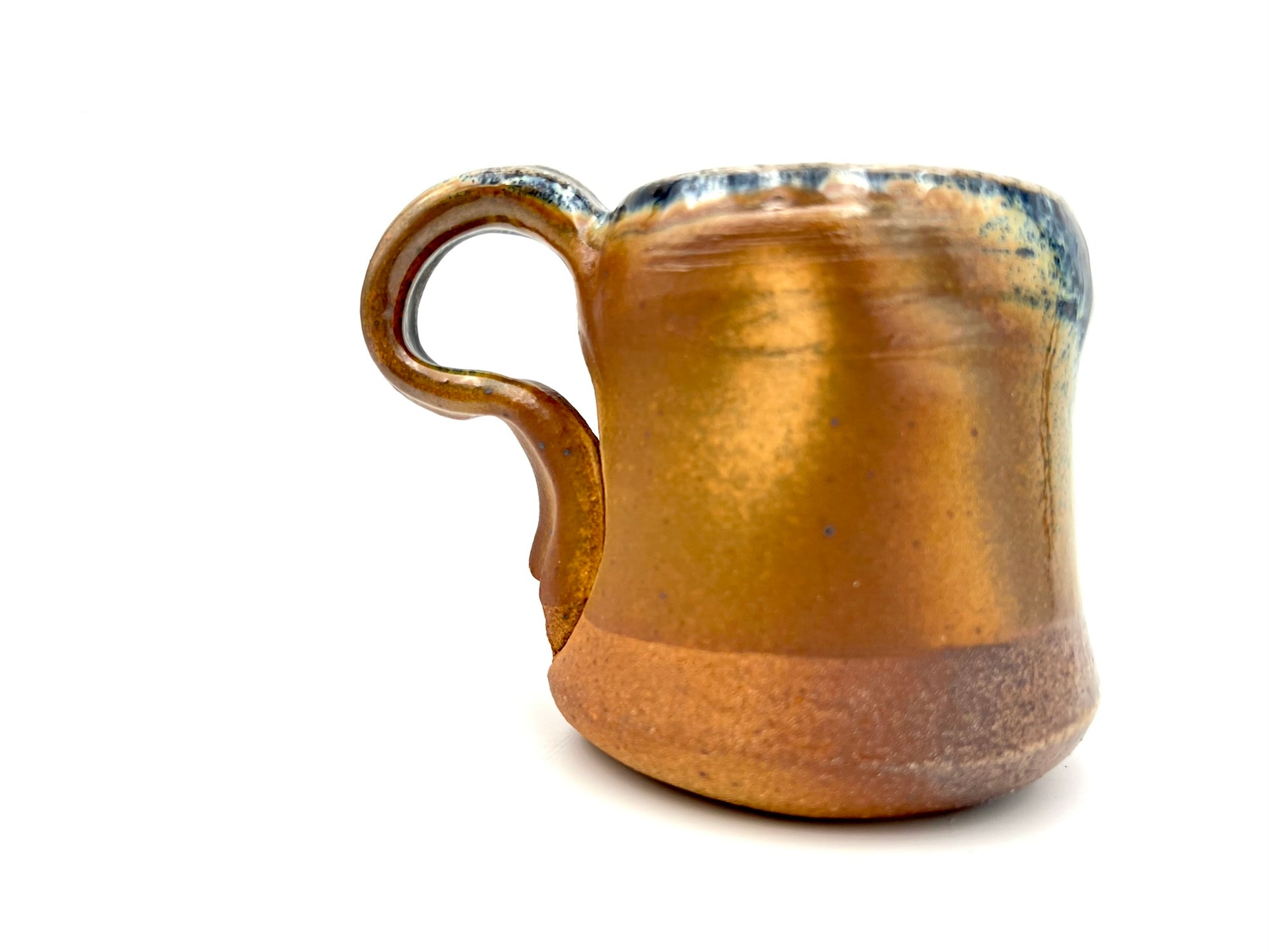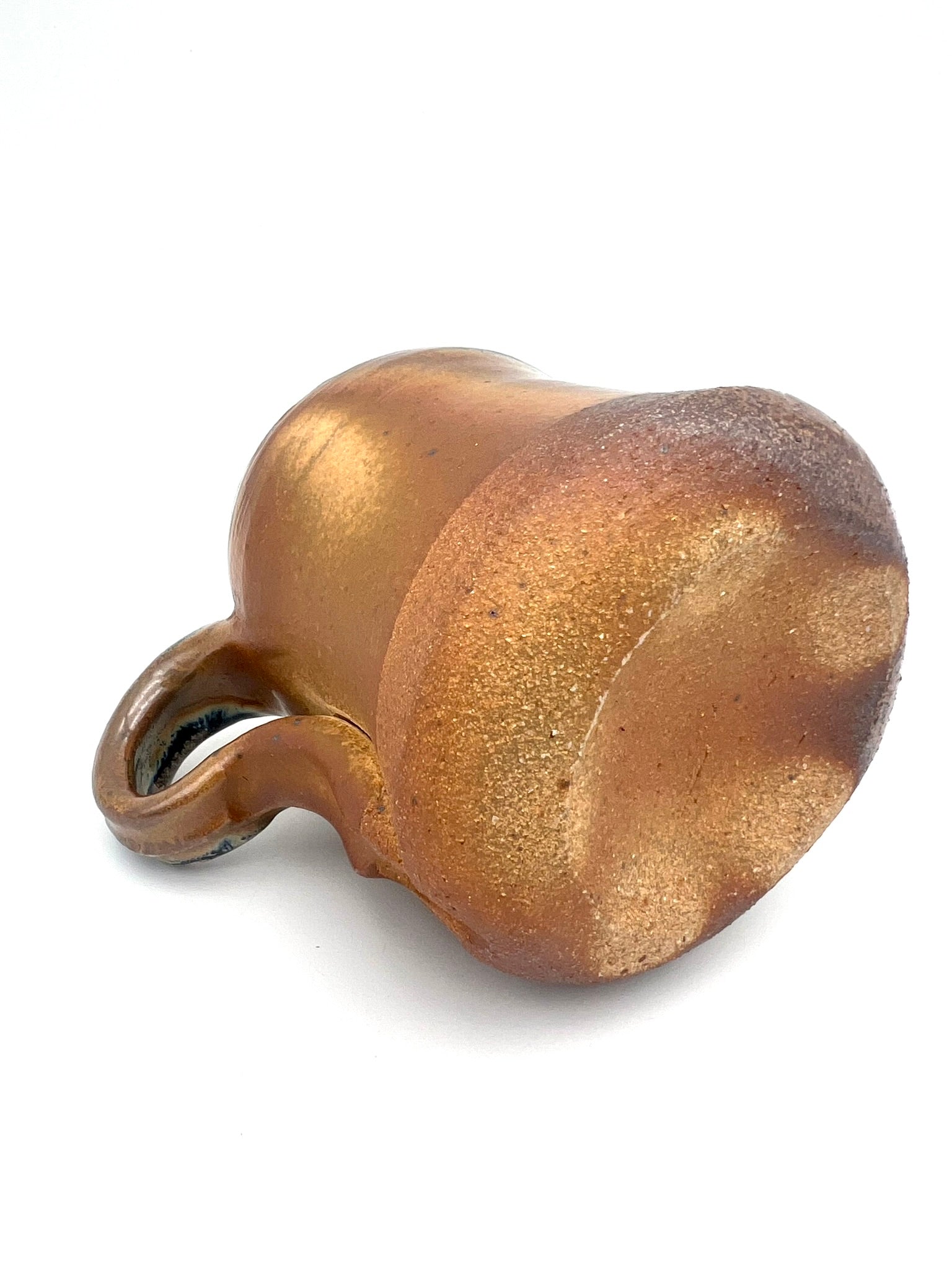 Thrown on the potters wheel/ pulled & sculpted handle. woodfired and drenched in soda. Rutile EPK slip on Stoneware Grog clay.