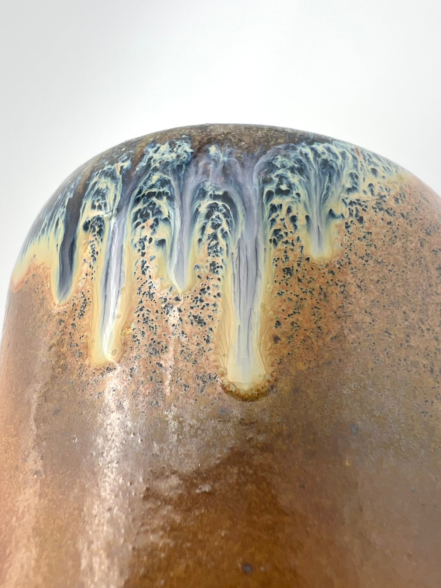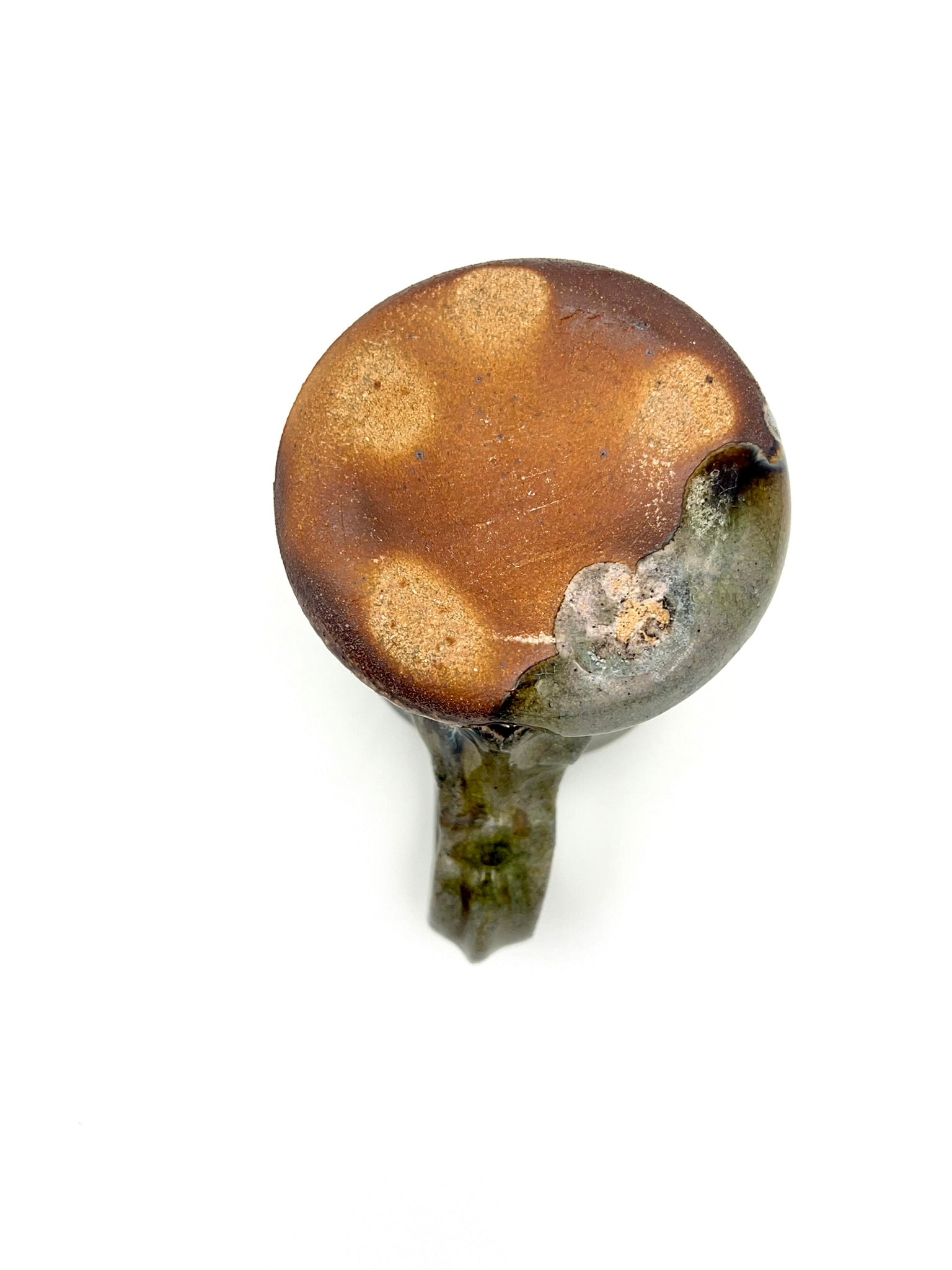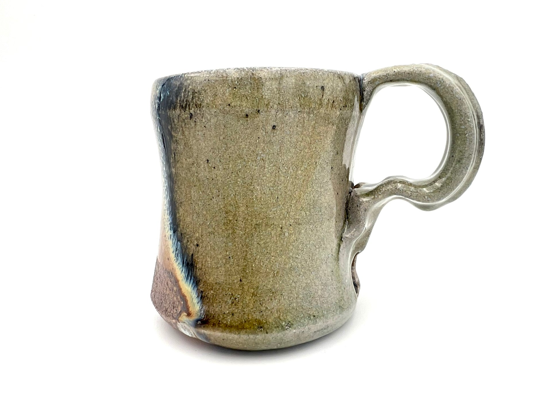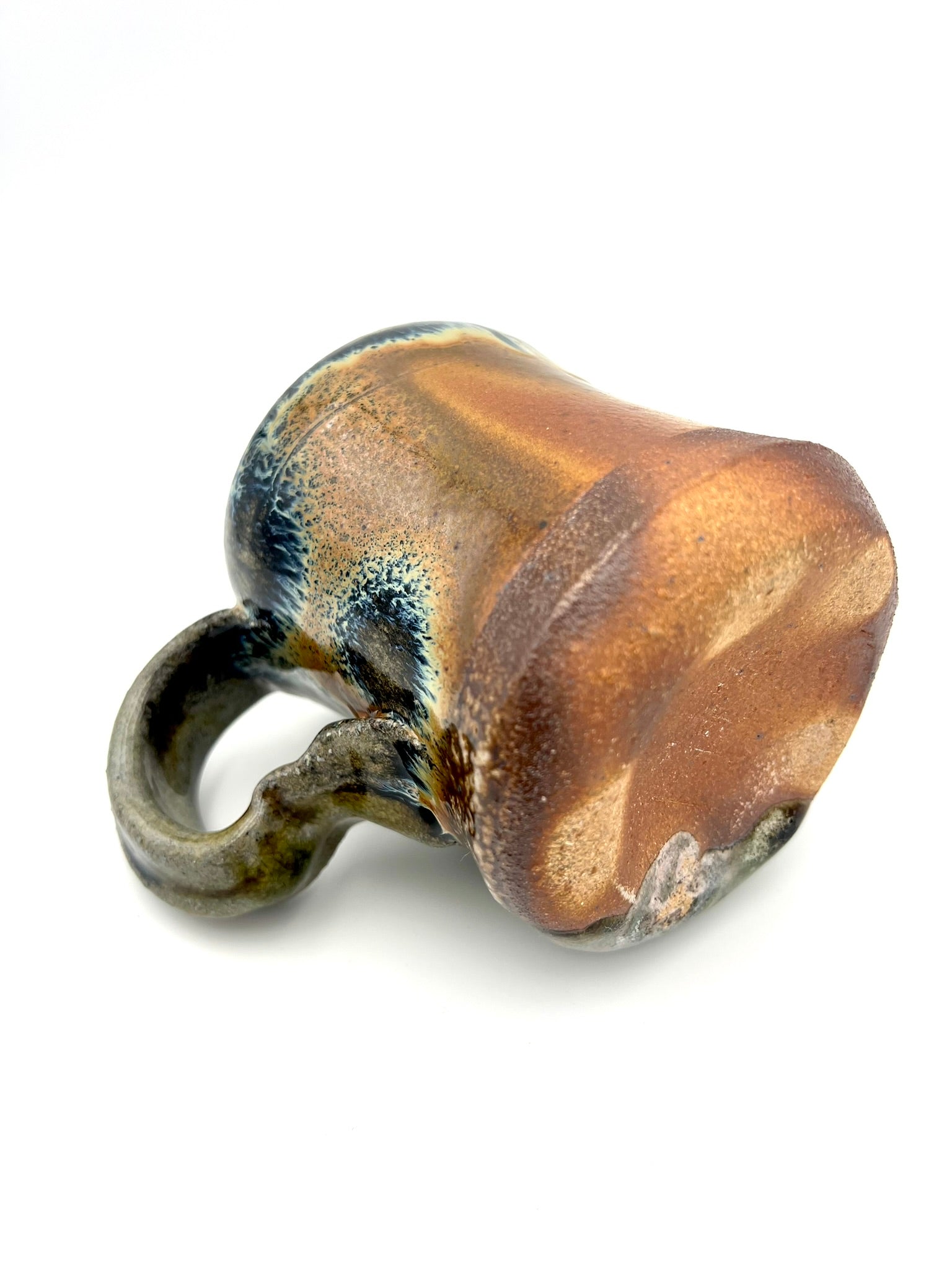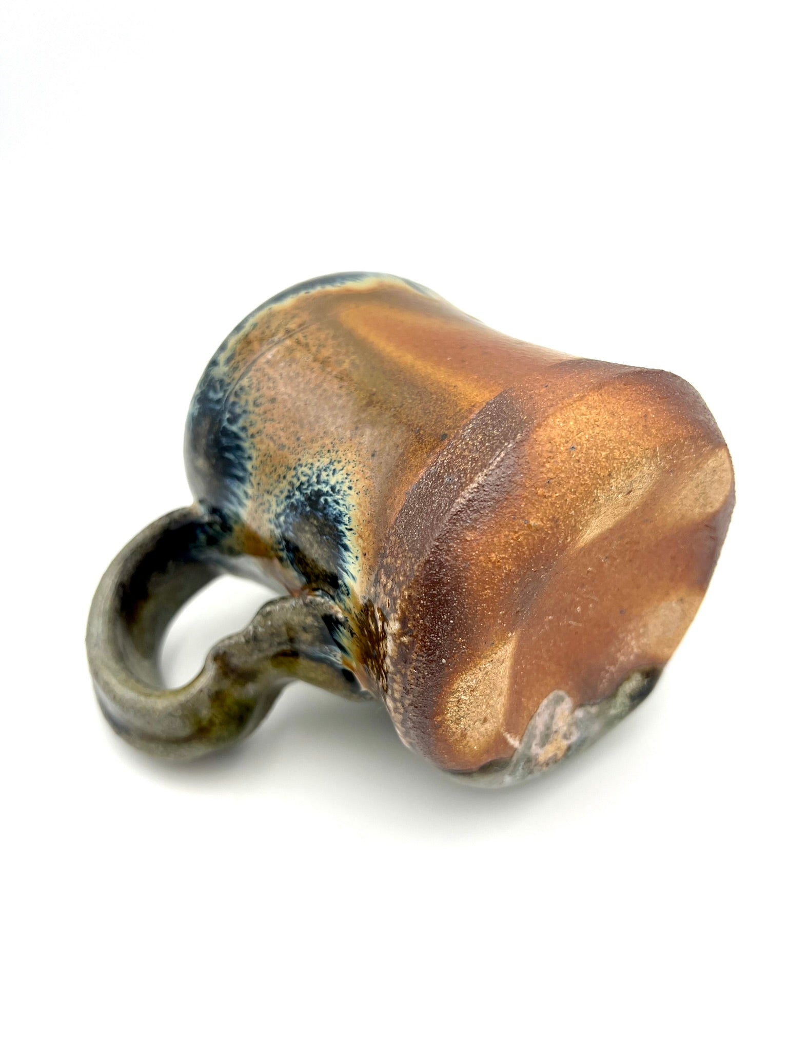 Thrown on the potters wheel/ pulled & sculpted handle. woodfired and drenched in soda. Rutile EPK slip on Stoneware Grog clay.