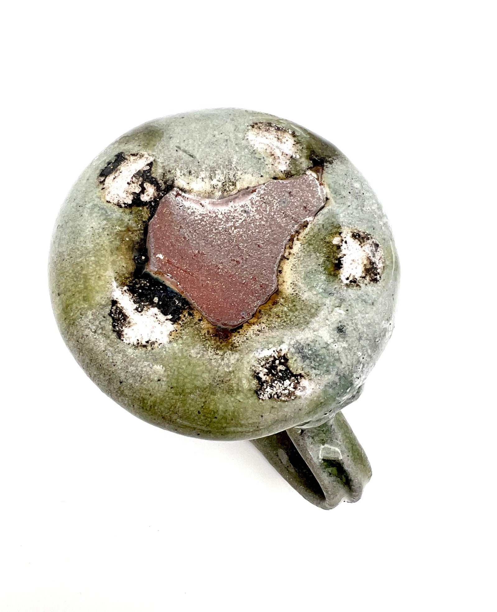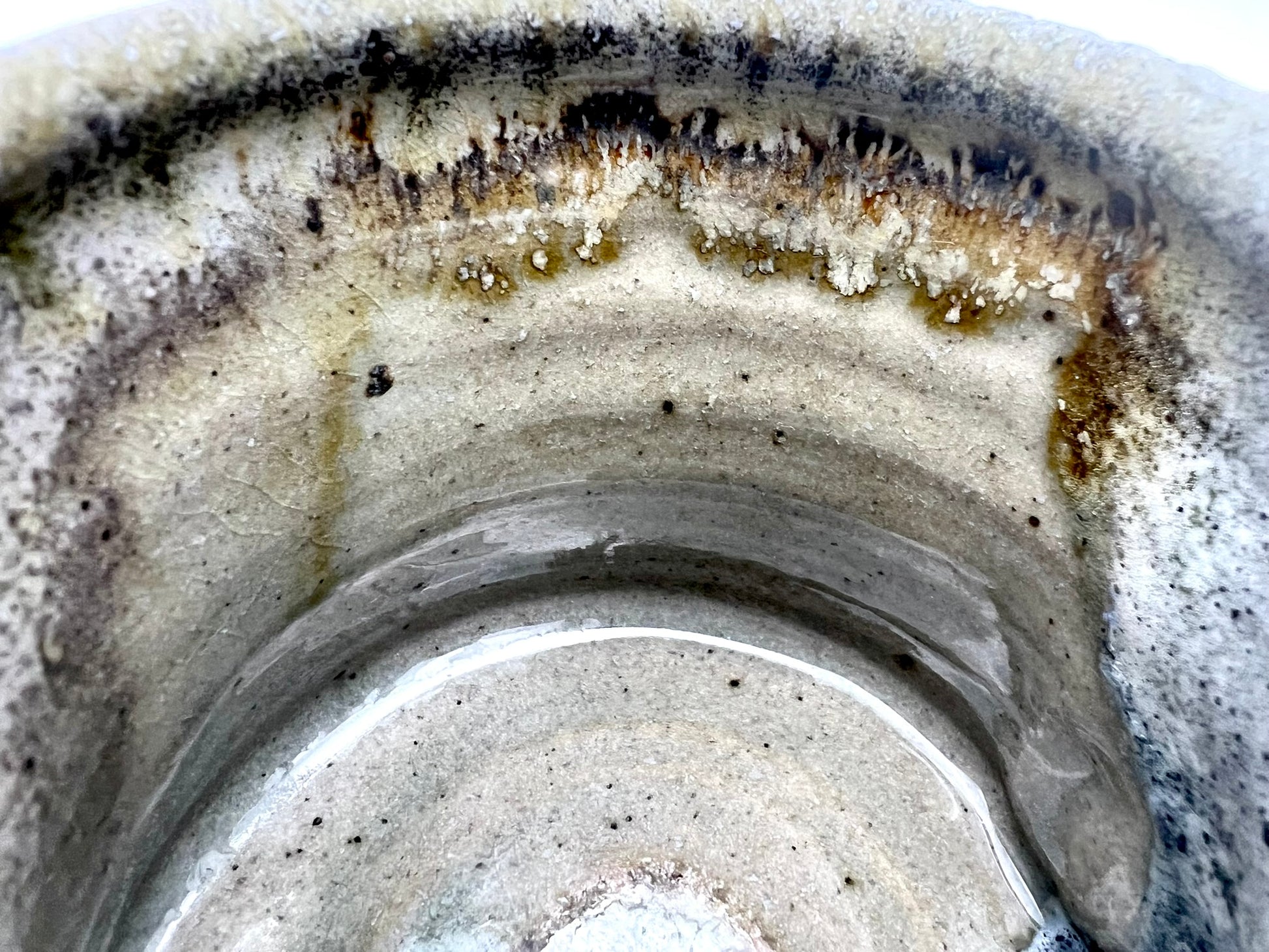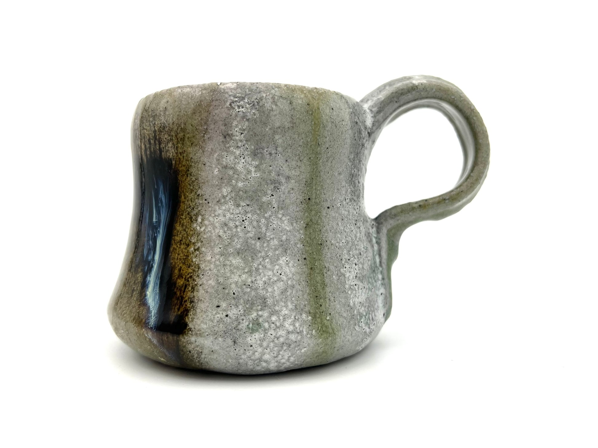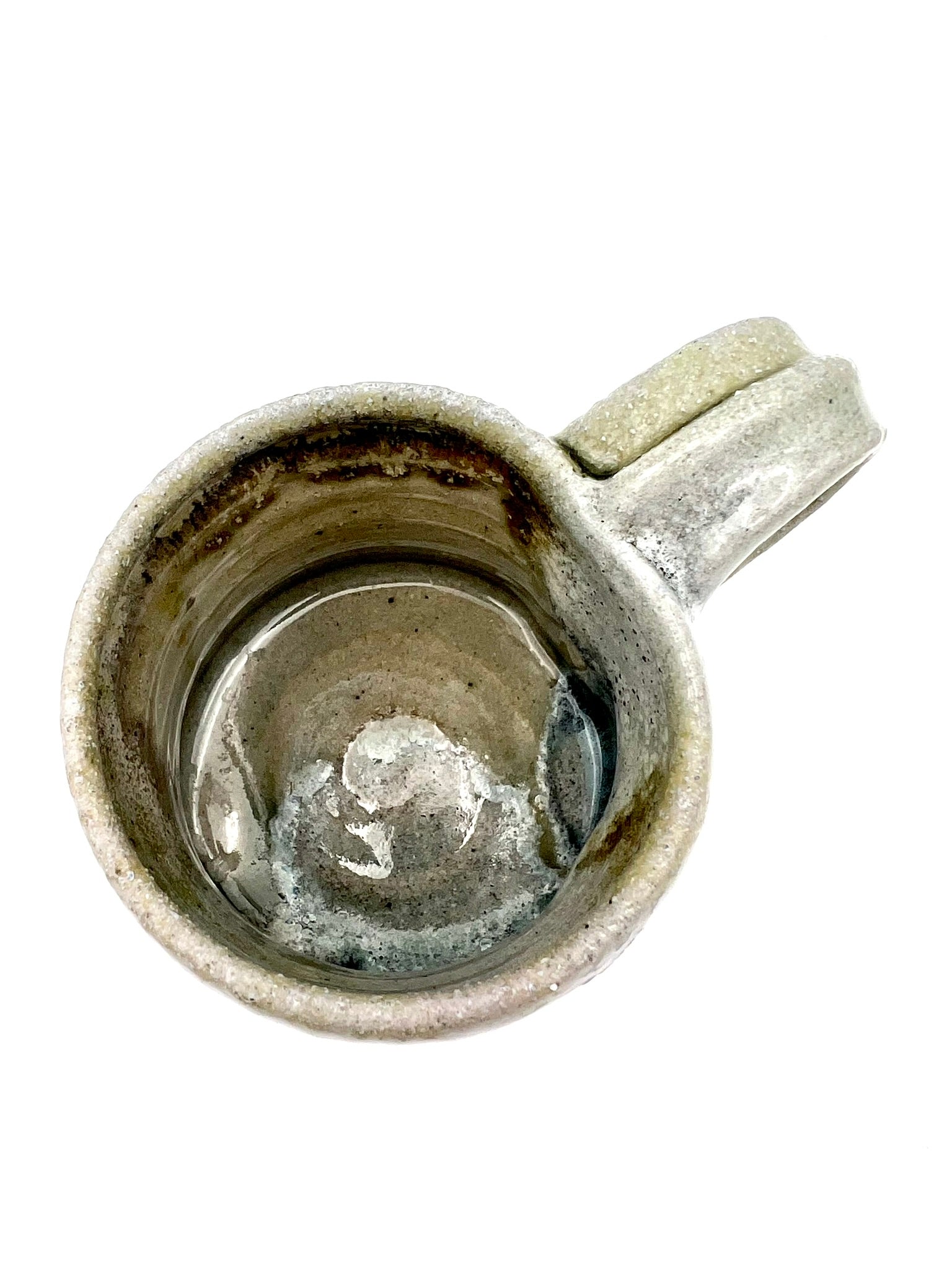Thrown on the potters wheel/ pulled & sculpted handle. woodfired and drenched in soda. Rutile EPK slip on Stoneware Grog clay.