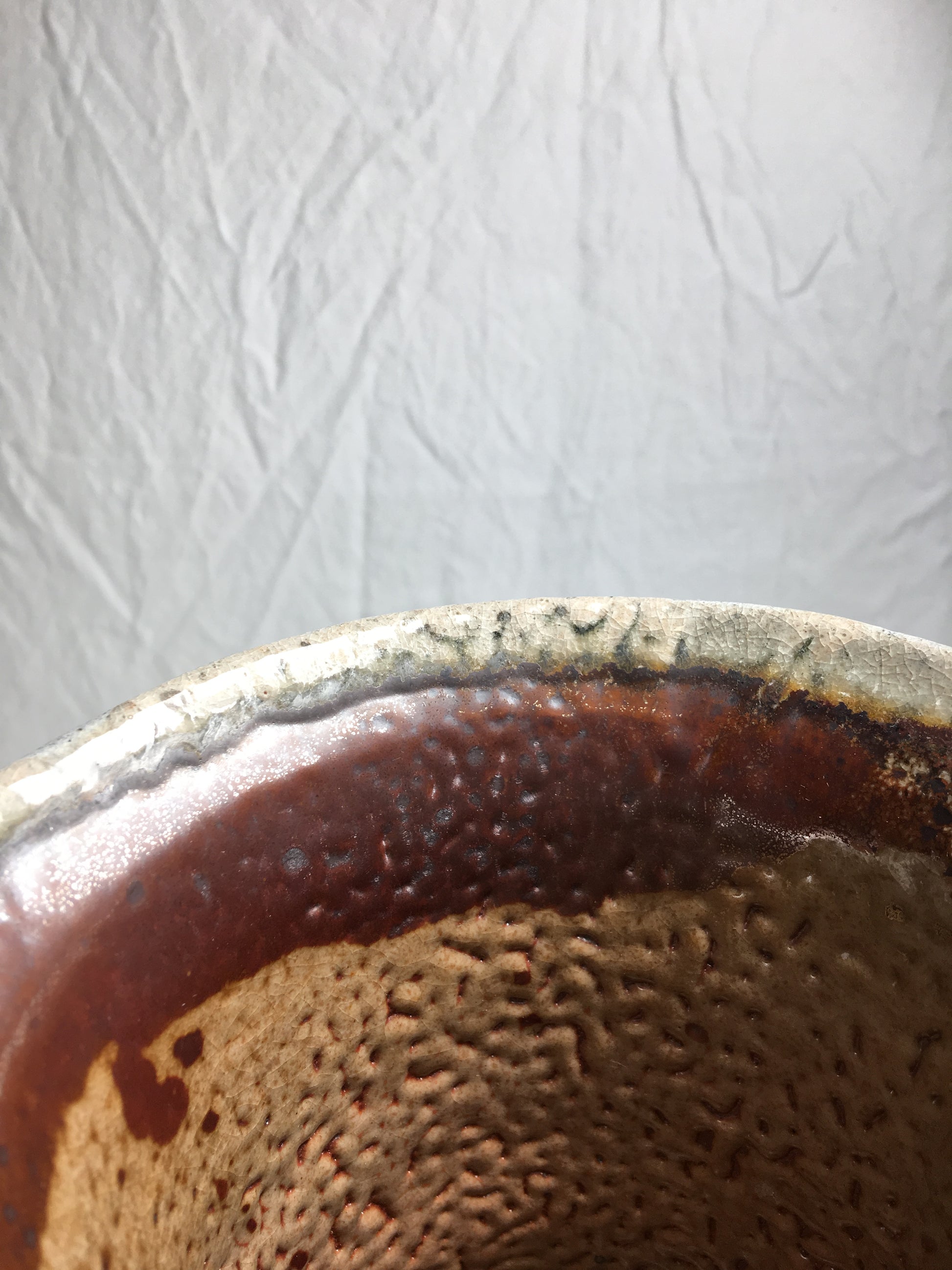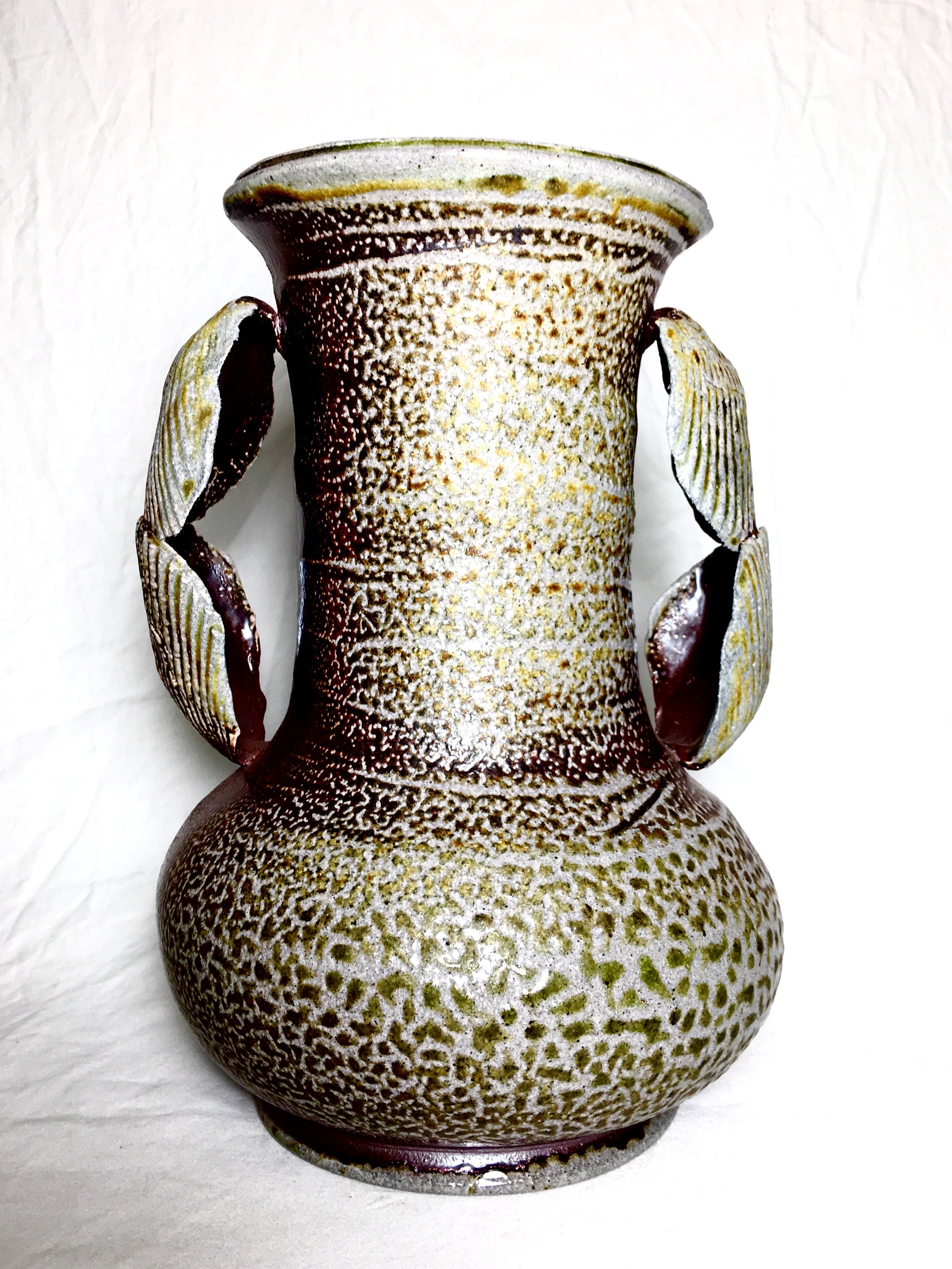 It was fired on its side on the top shelf in a Soda Kiln at Pottery Northwest.
